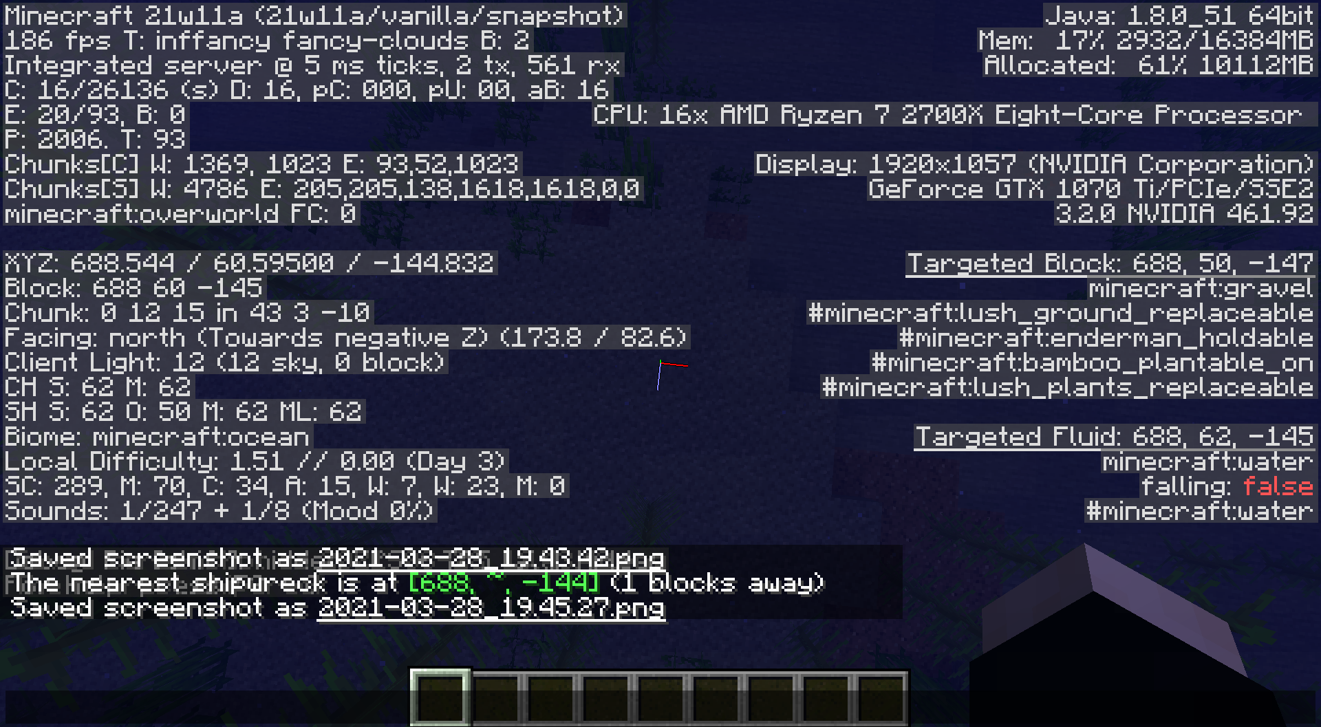 /locate shipwreckcommand, I was provided with the coordinates at which a shipwreck was located. I teleported to this particular place in the world and there was indeed a shipwreck.