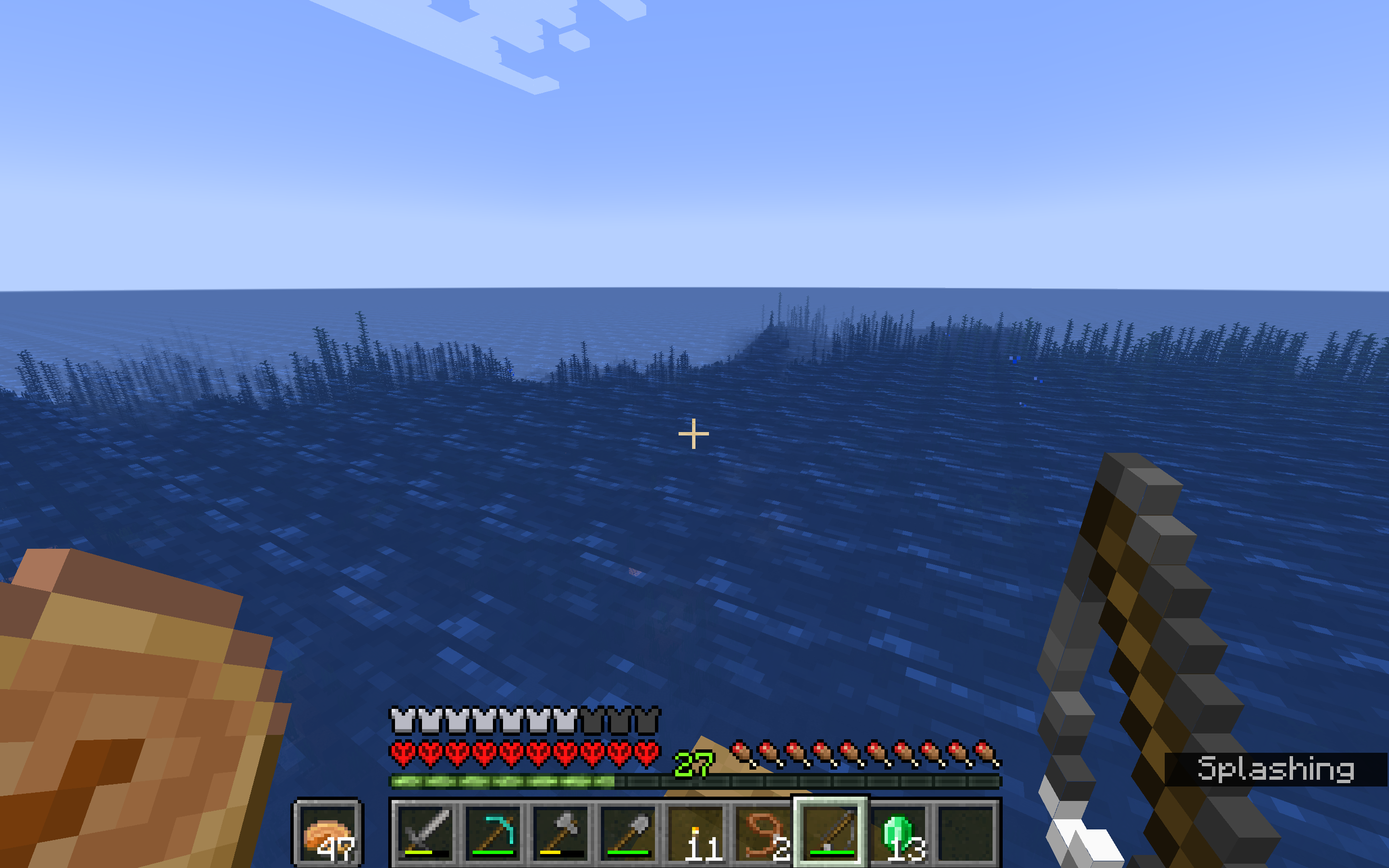 When a fishing pole is cast, the bob doesn't show but everything else does.