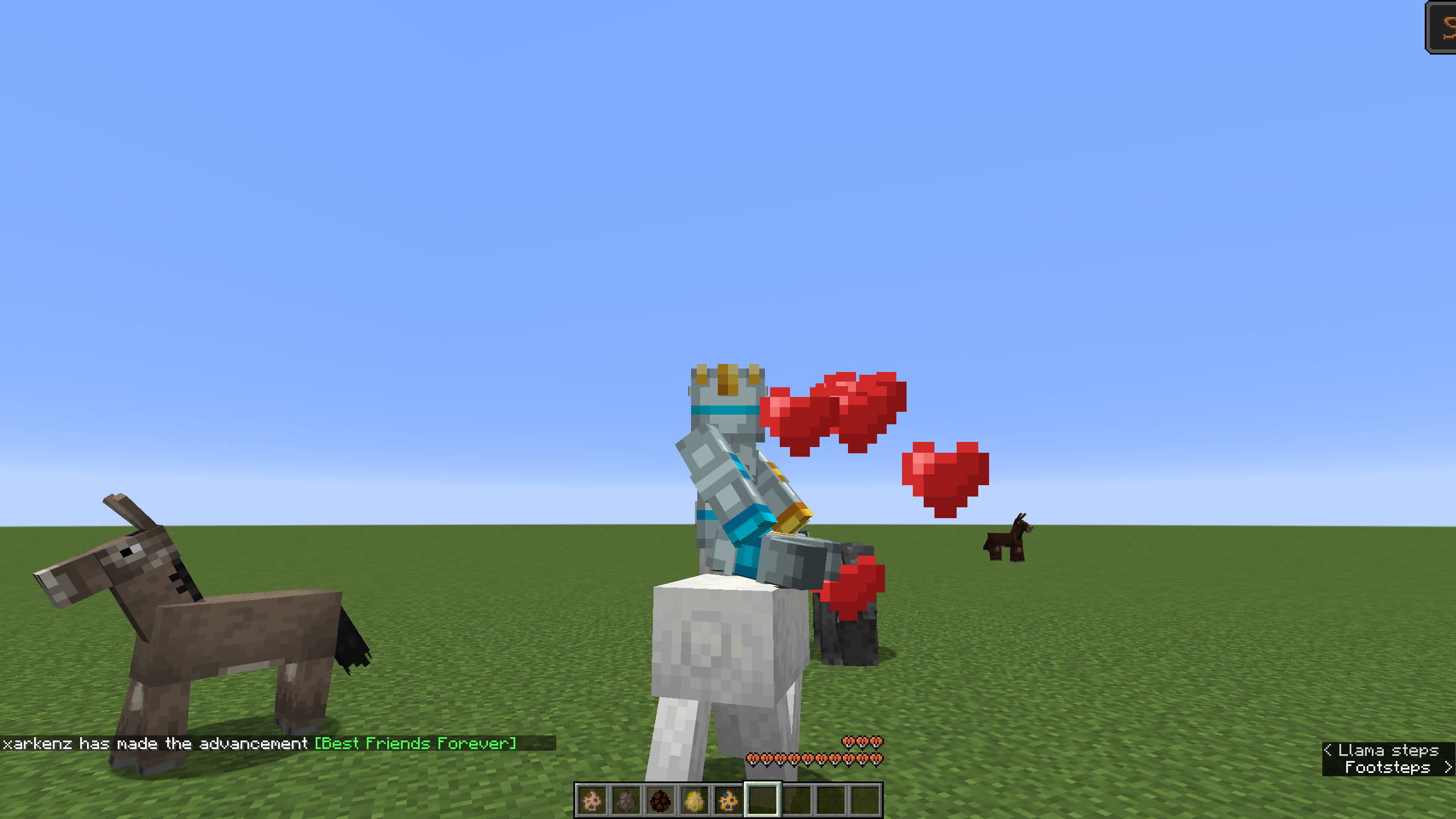 Spawn an animal that can be tamed via riding (tried with llama, trader llama, horse, donkey, and mule)