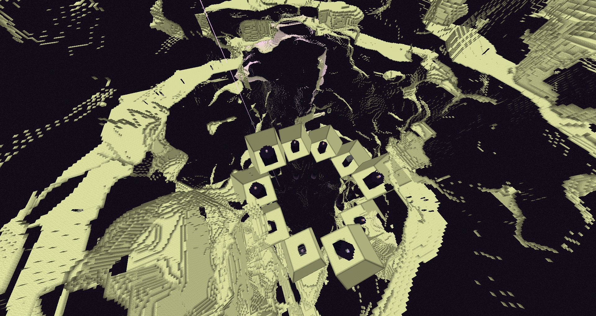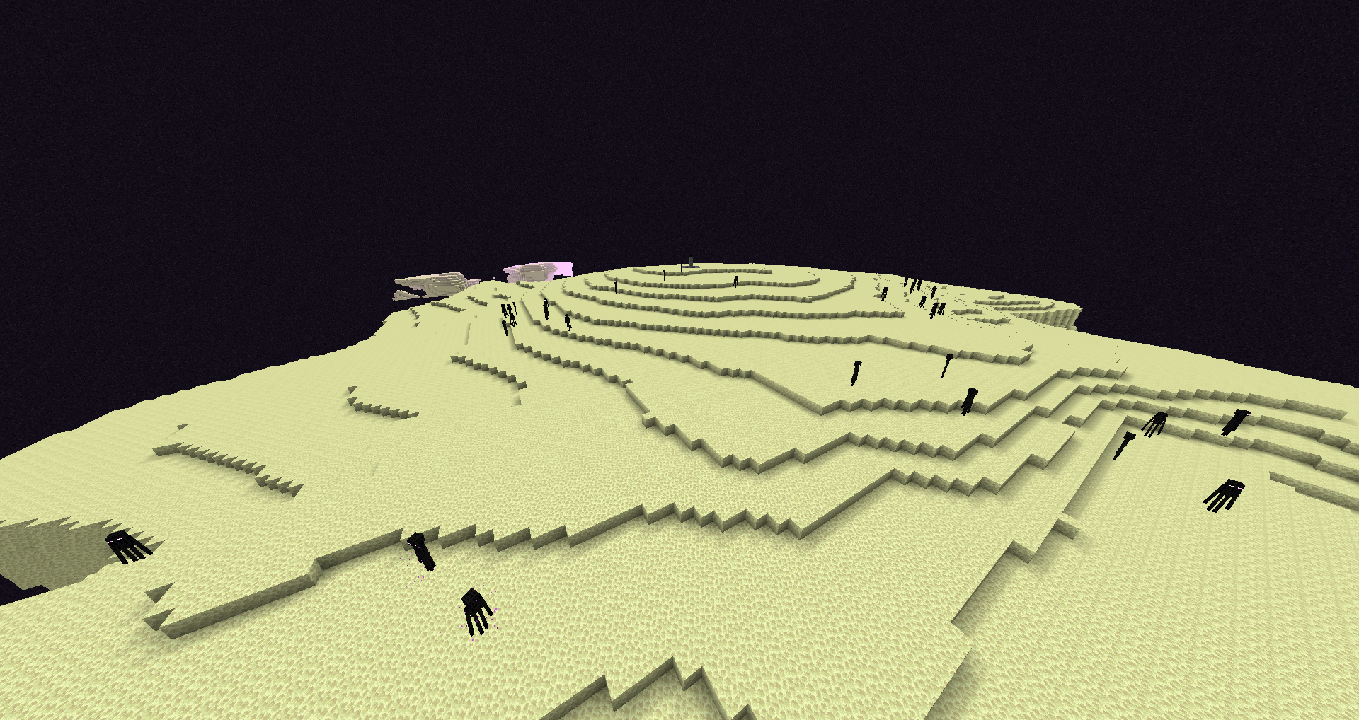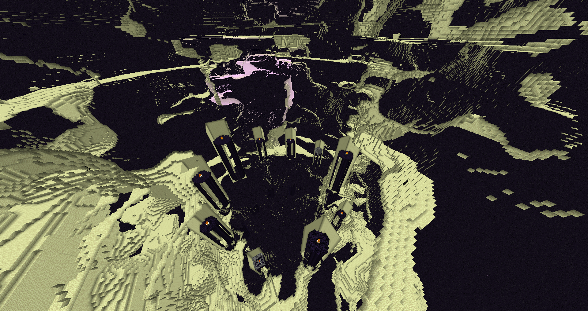 When entering the End, terrain generates very high, up to almost y=200. (Previously I've never seen it generate above "sea level.") The pillars are buried underground, and the dragon spawns underground and eventually flies to the top. The portal is on the very top. When respawning the dragon, the pillars stay at the generated spot.