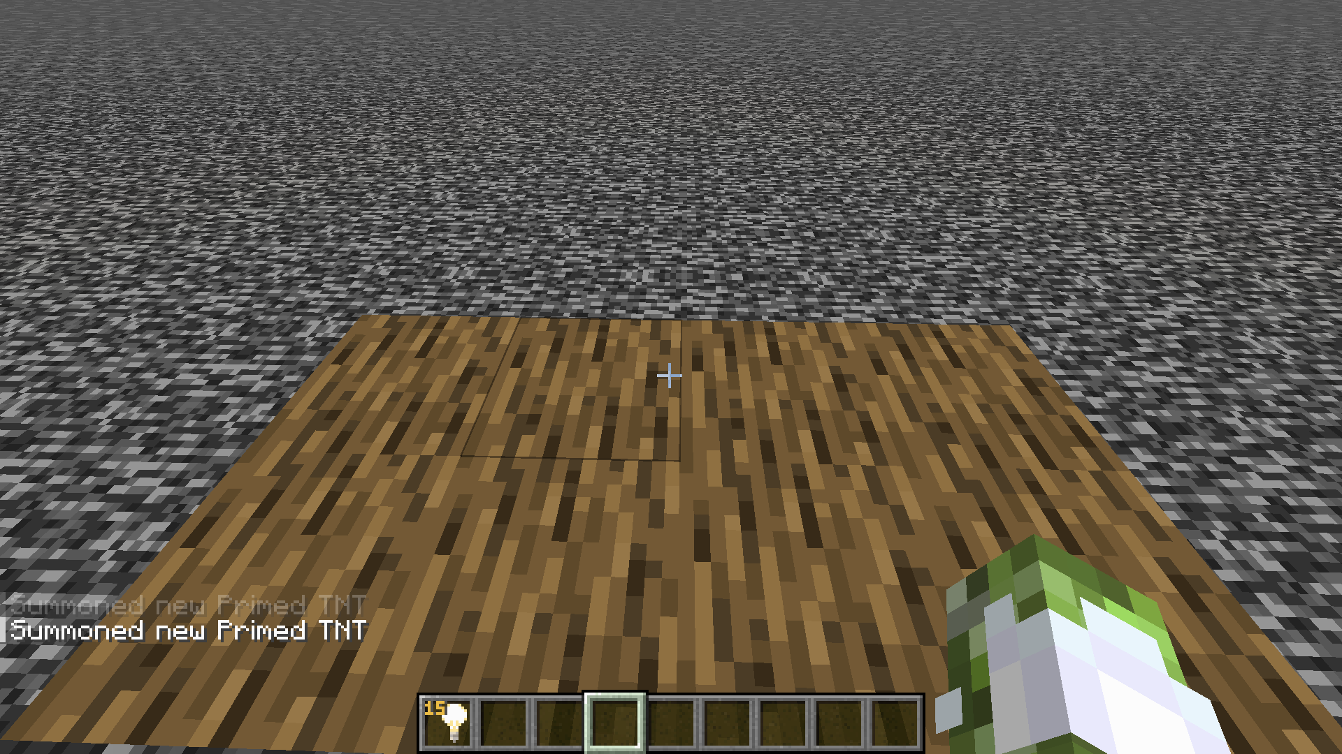 /summon minecraft:tnt ~3 ~1 ~3Take note as to whether or not light blocks prevent explosions from destroying blocks.