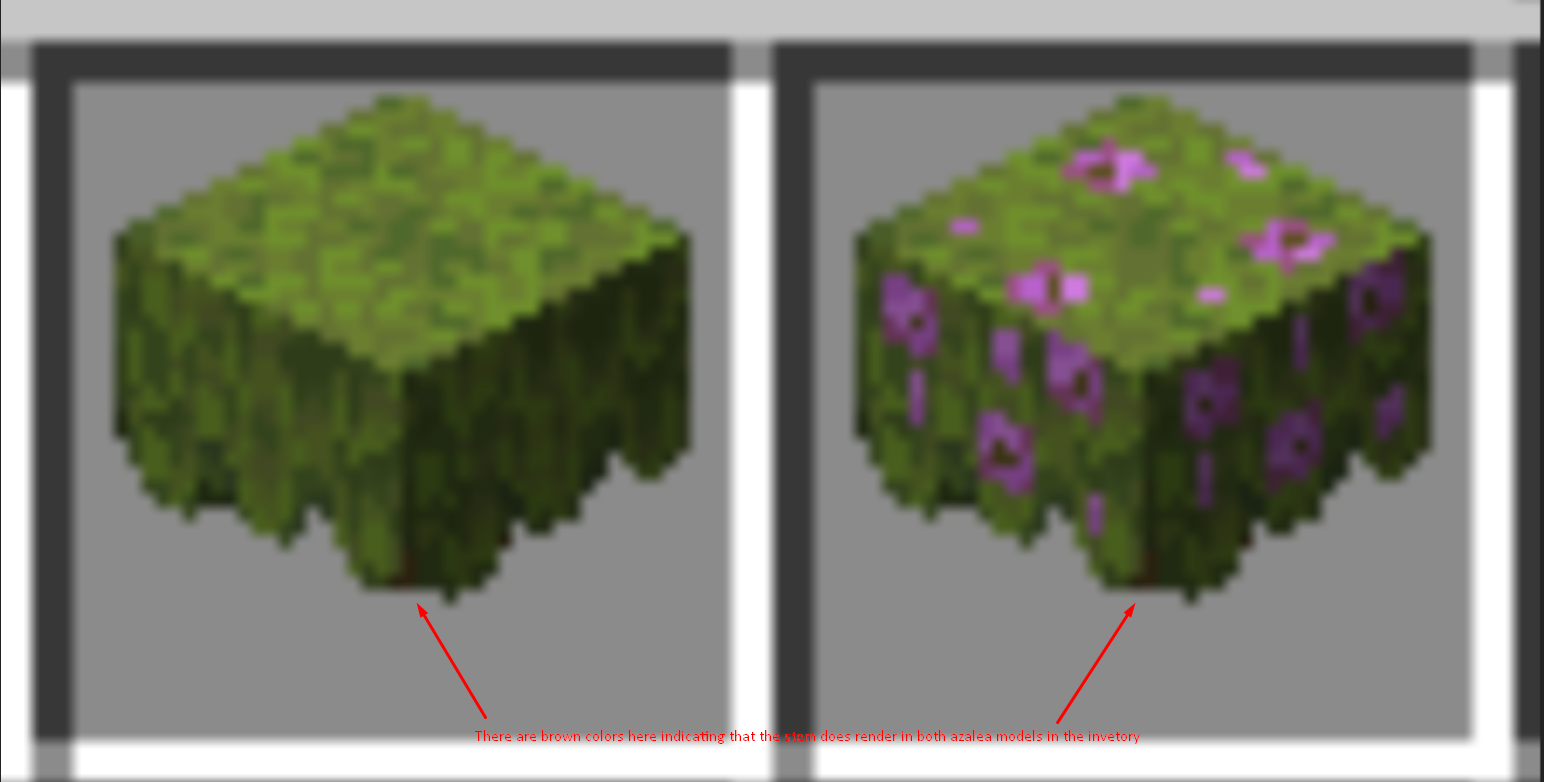 I am unable to reproduce this issue in 21w15a. The stem is just barely visible in both azalea models however, it does indeed exist. I've attached a screenshot. It's quite invisible because of the angle of the model but I assure you, it's there.