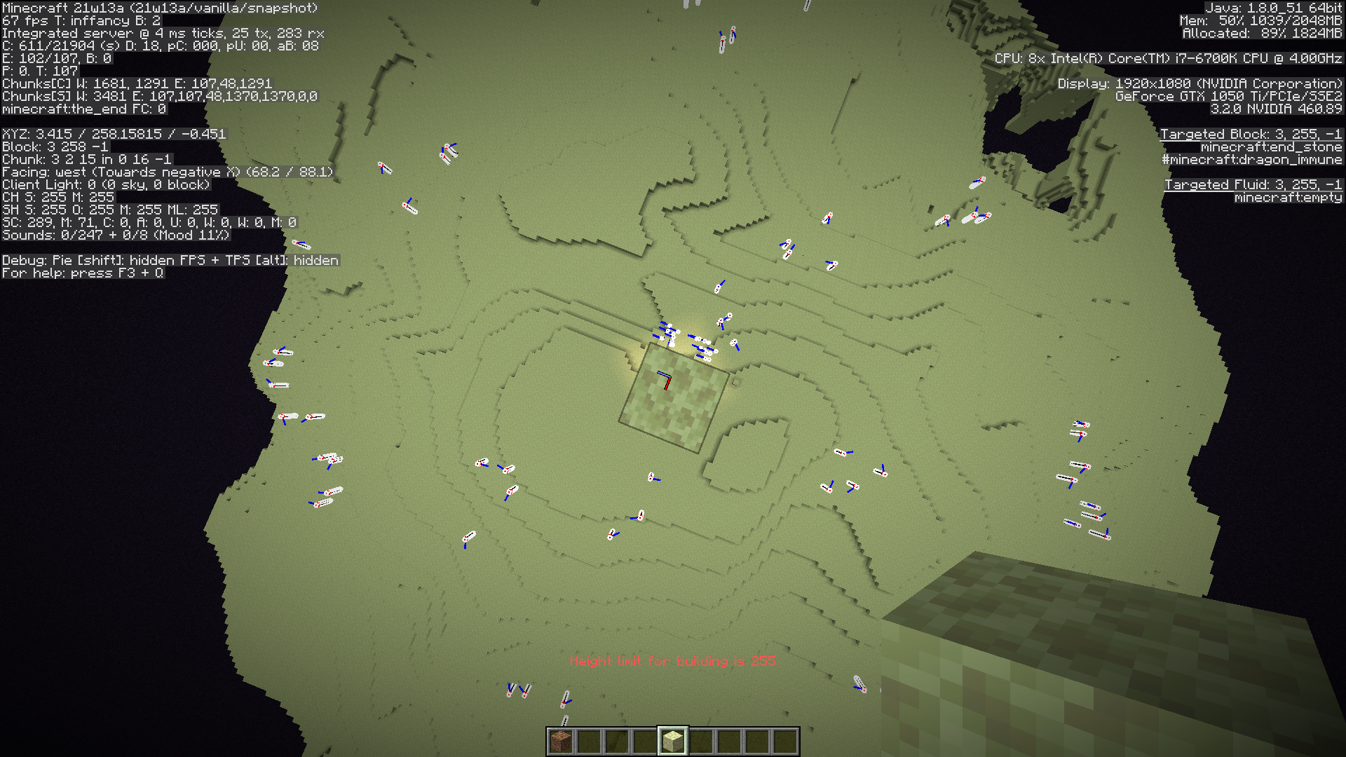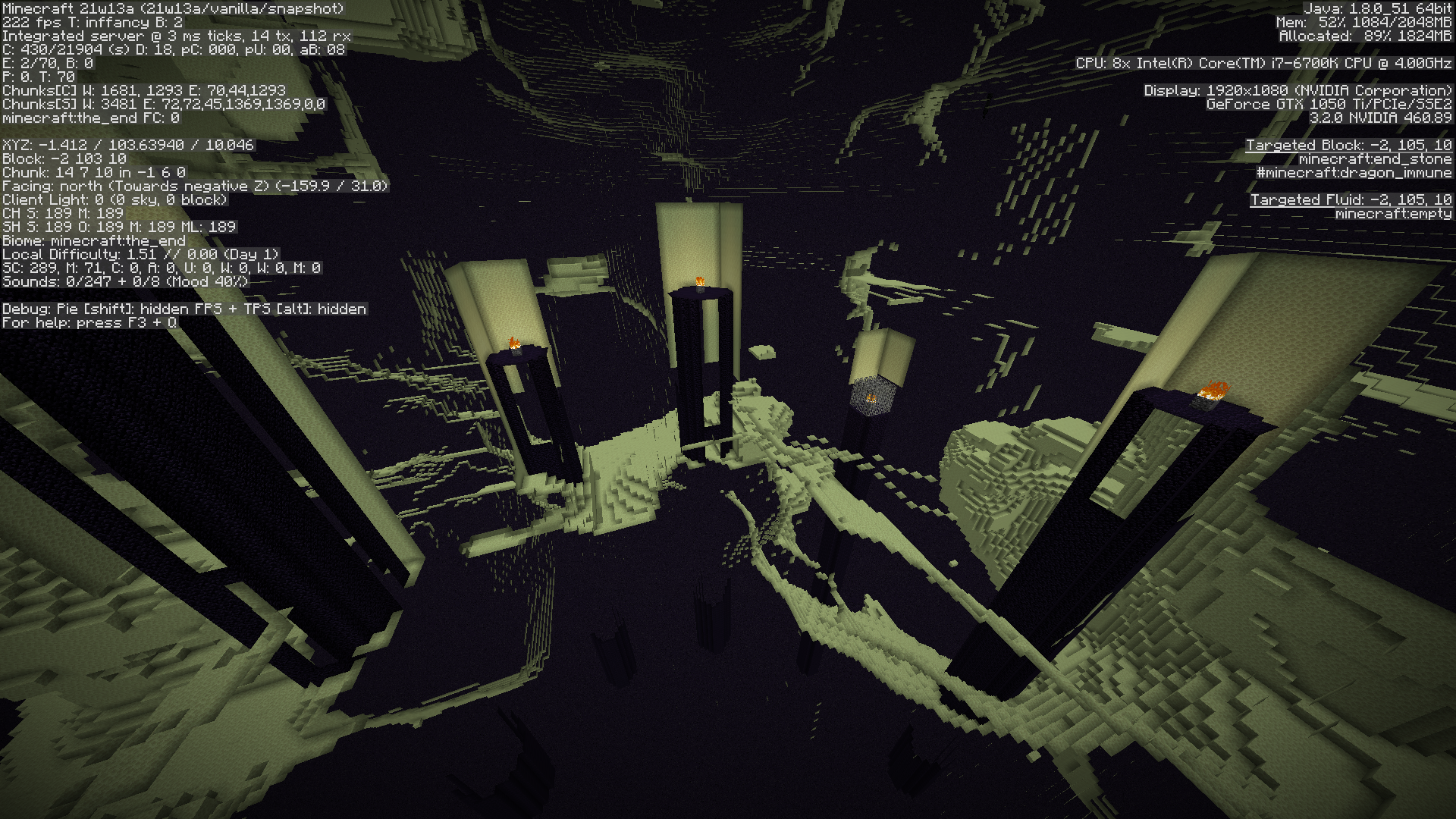 Also the End dimension generation is very buggy, making the top of the island at Y=180 making the towers burried
