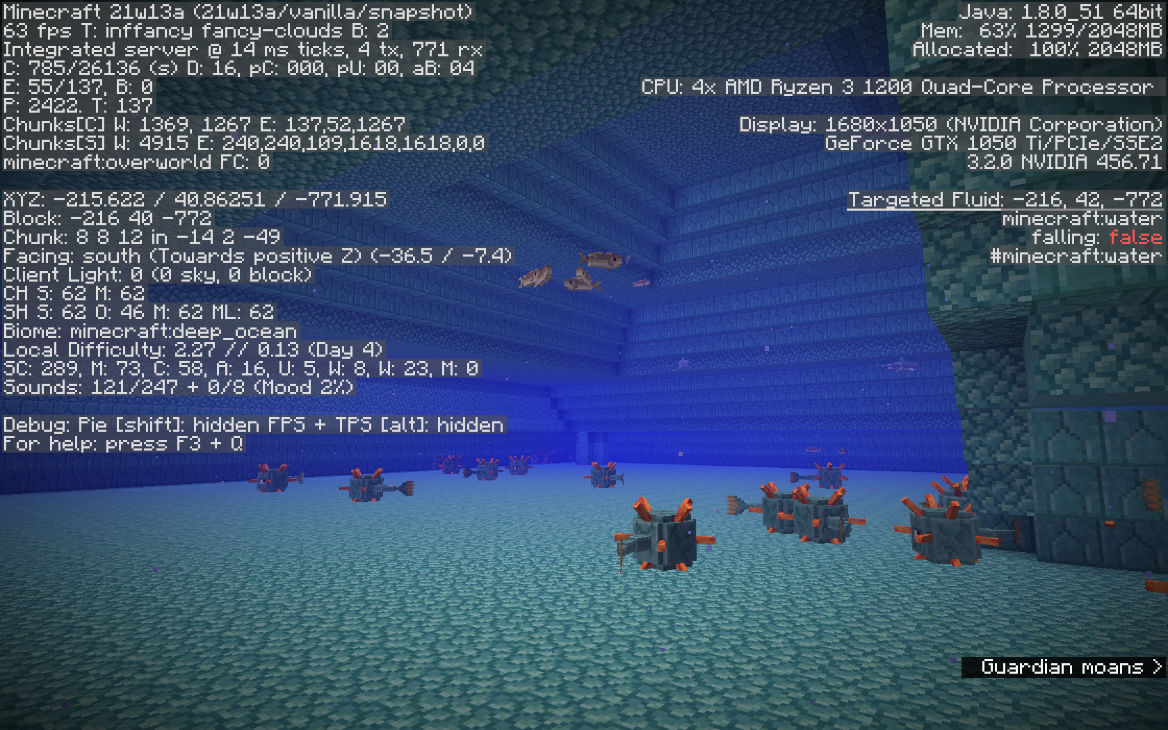 Ocean Monuments do not generate interiors, nor do Elder Guardians spawn.