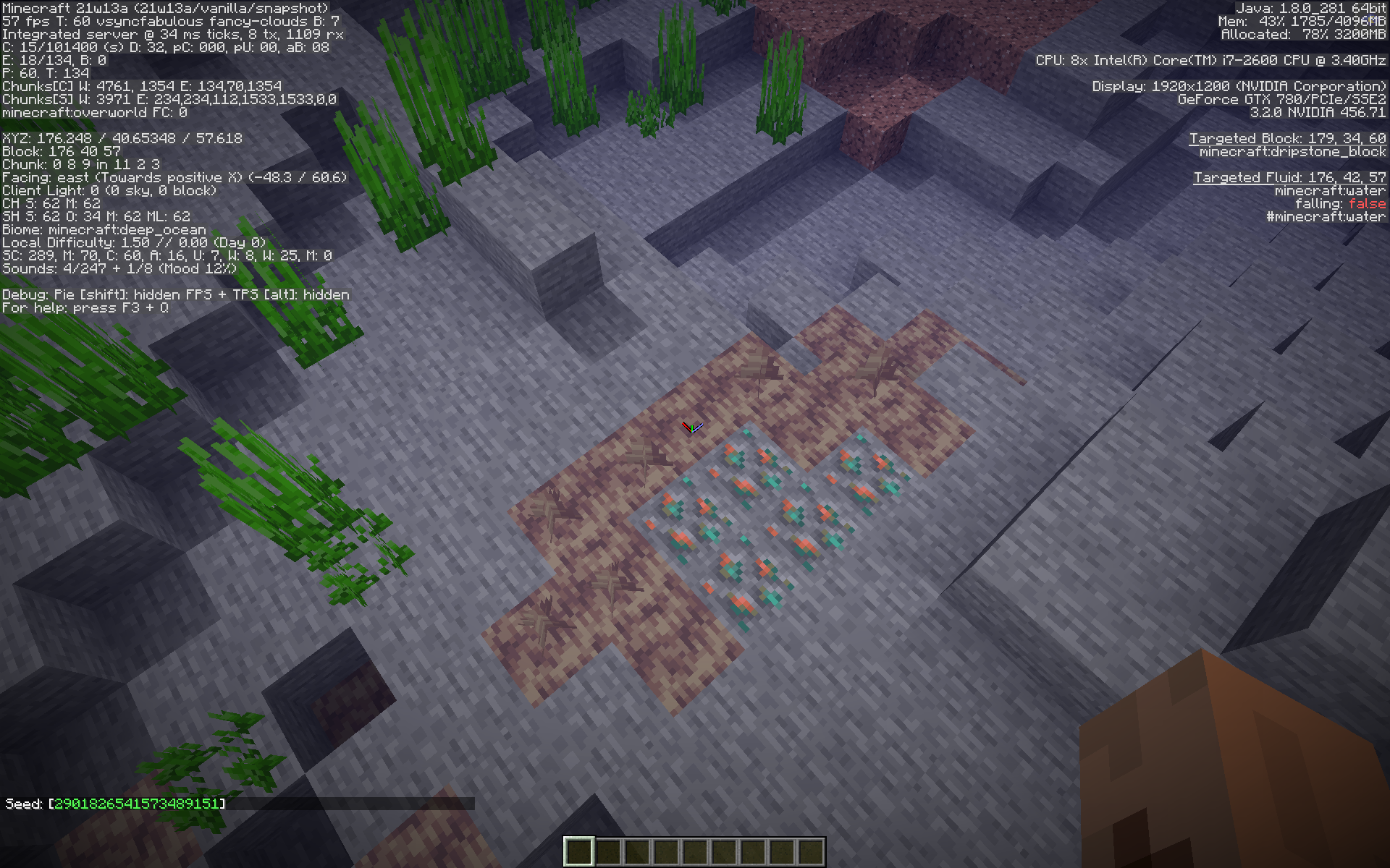 When going to oceans, magma from underwater caves and dripstone clusters generate.