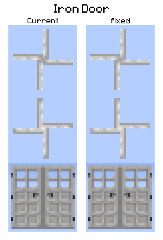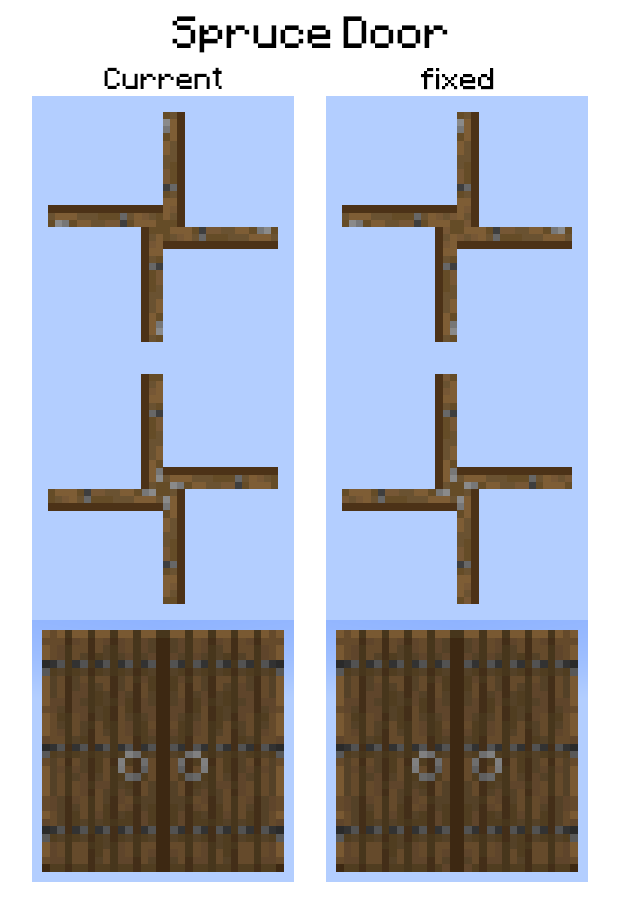 *Due to changes made in 1.18 Pre-release 5 to the sides of doors (probably to do with MC-170557), most of the doors no longer form swastikas, but warped doors can still form them.