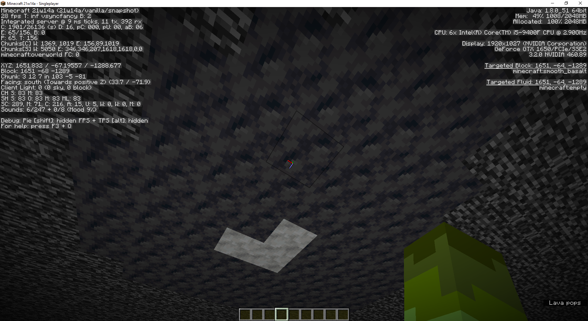 Normally, when a geode generates near bedrock, smooth basalt and calcite generate sorrounding the geode, but it generates instead of bedrock when it's very close to y=-64