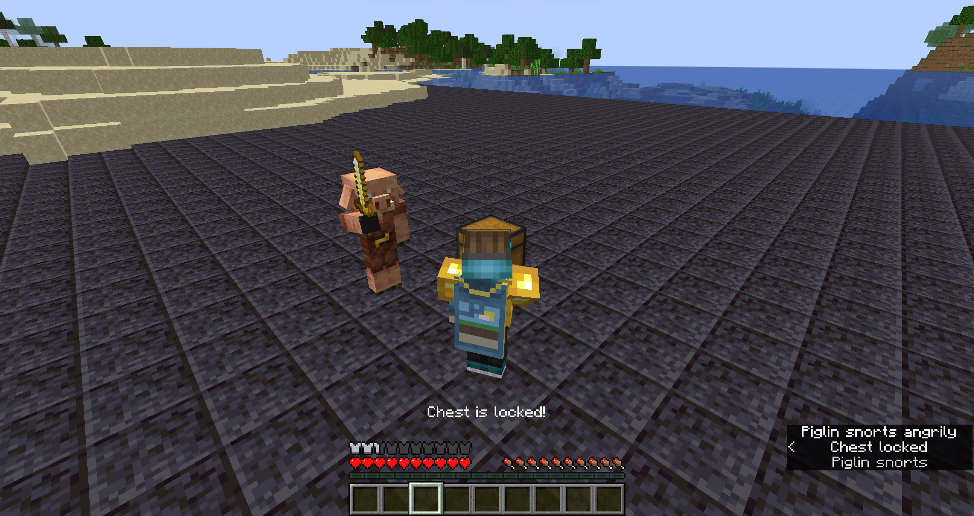 ...If we look at the above class, we can see that no checks are carried out to see whether the desired chest contains a lock when attempting to open it, before angering nearby piglins. The angerNearbyPiglins() method will always be called when the chest is right-clicked on, regardless of whether or not it has a lock, resulting in this issue occurring.