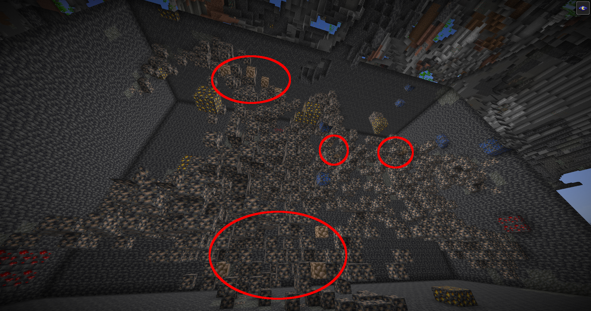If you are lucky you may find a raw ore block in the vein — (see my latest screenshot... 11 in one vein spanning 3 chunks, even if it were a valid "large vein" of that size, 11 ore blocks? when the release notes indicate a clear rarity of these ore blocks at 1 per vein, maybe 2 or 3 if you wanted to push it)