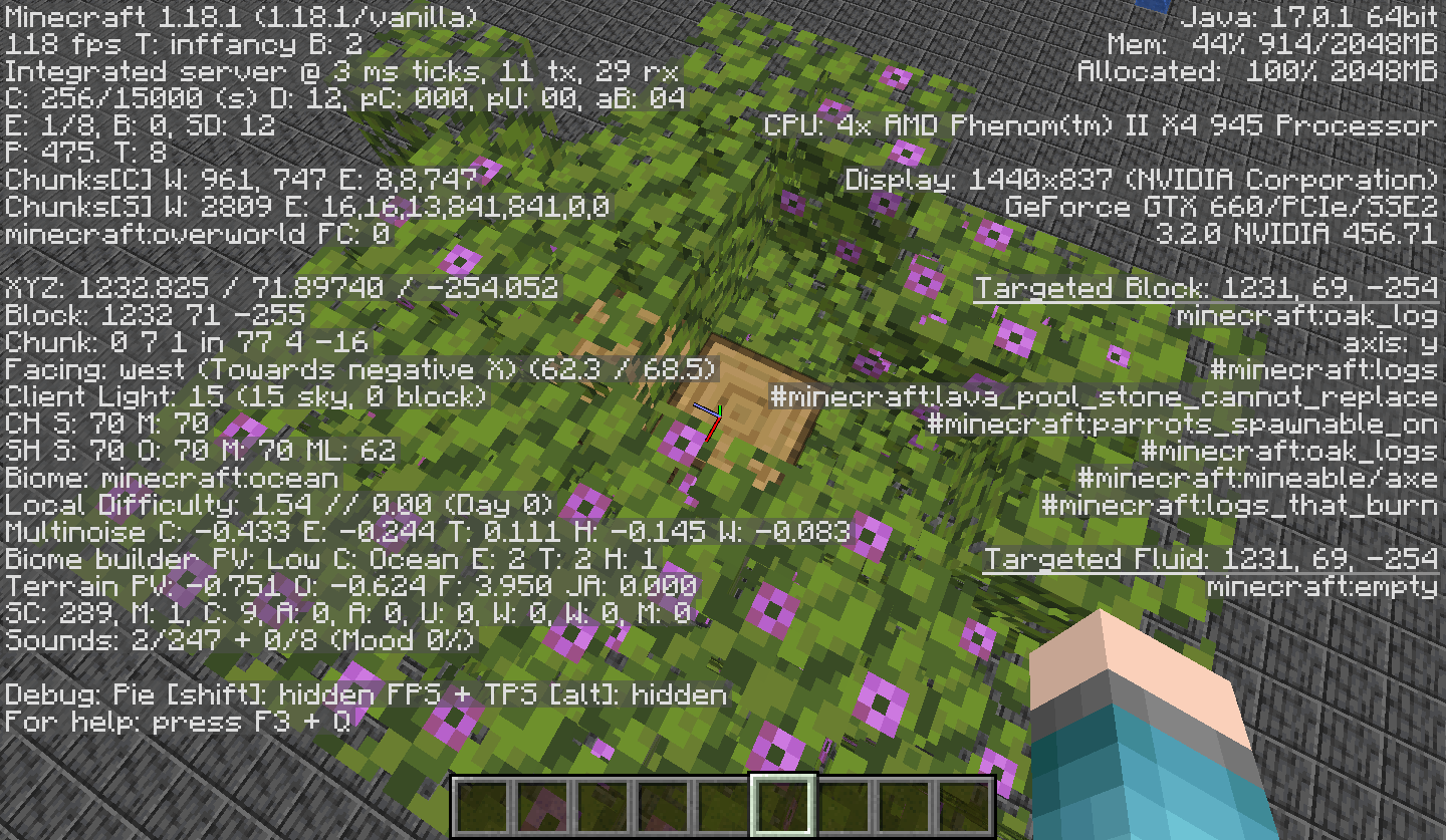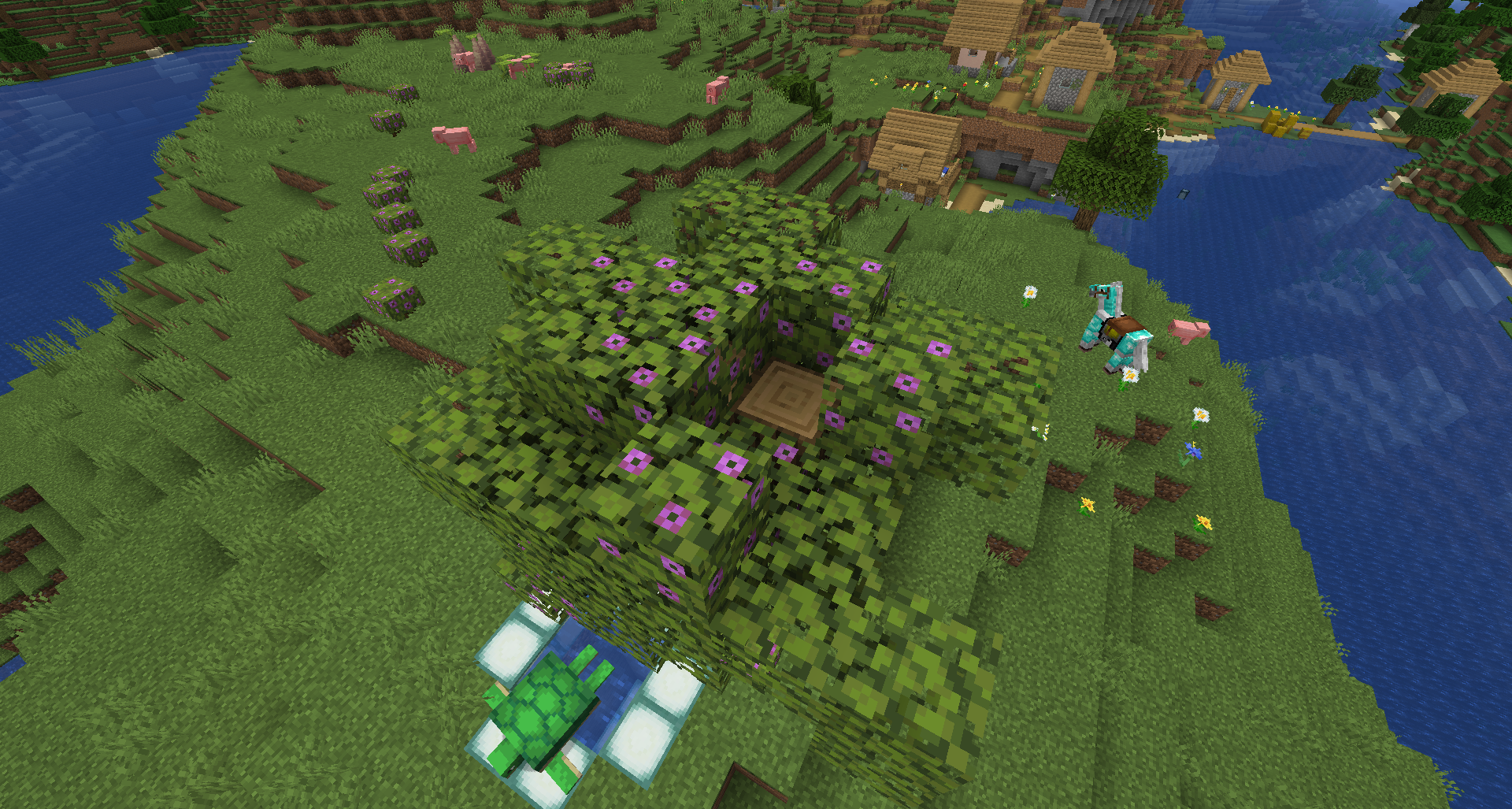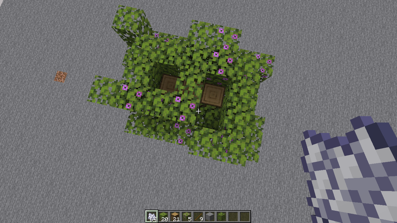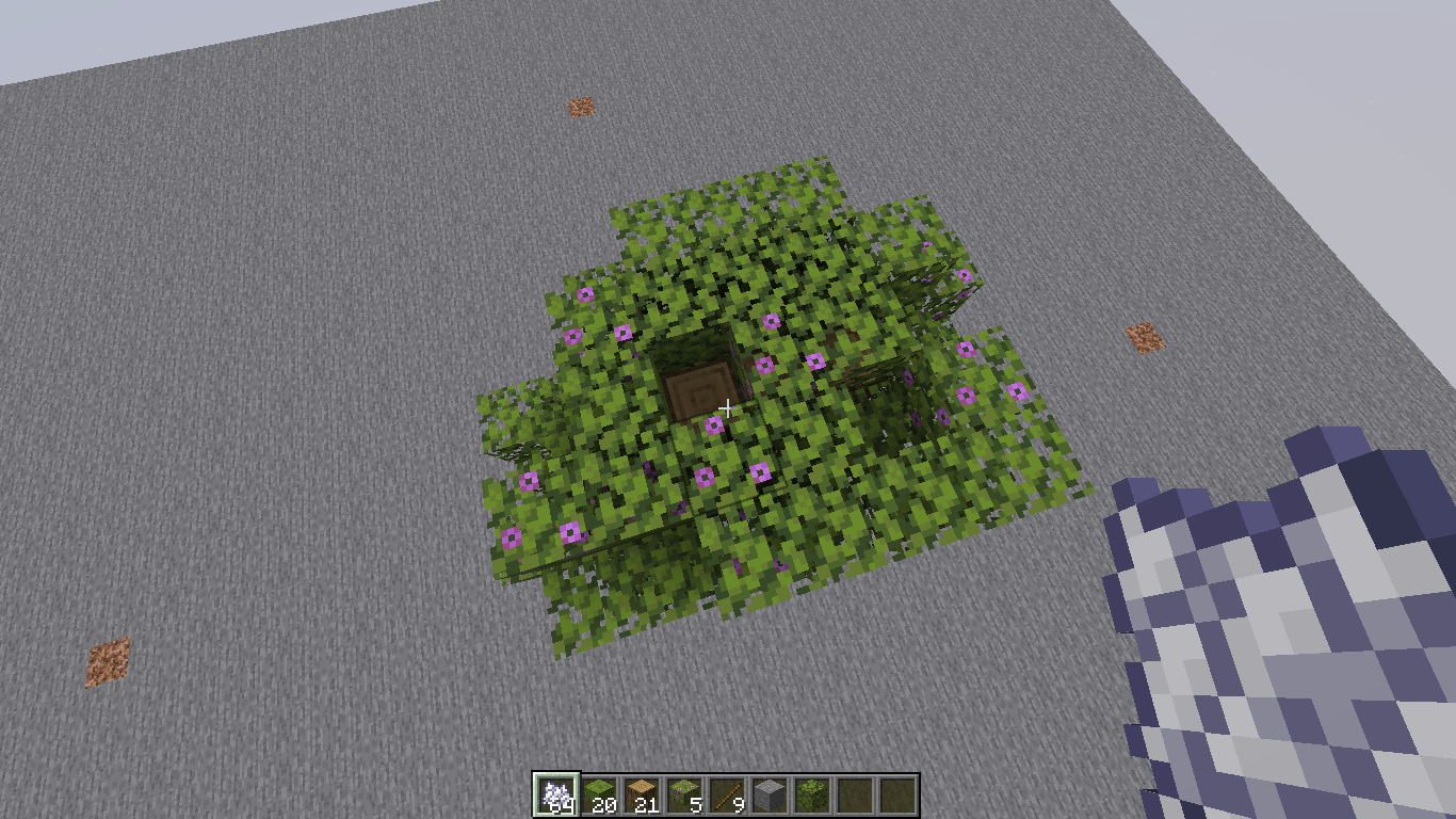 Some azalea trees may generate without leaves being above one of the tree's logs, causing the logs of the tree to be exposed. This happens to 1 log although it may occasionally generate with two logs not having leaves above them.