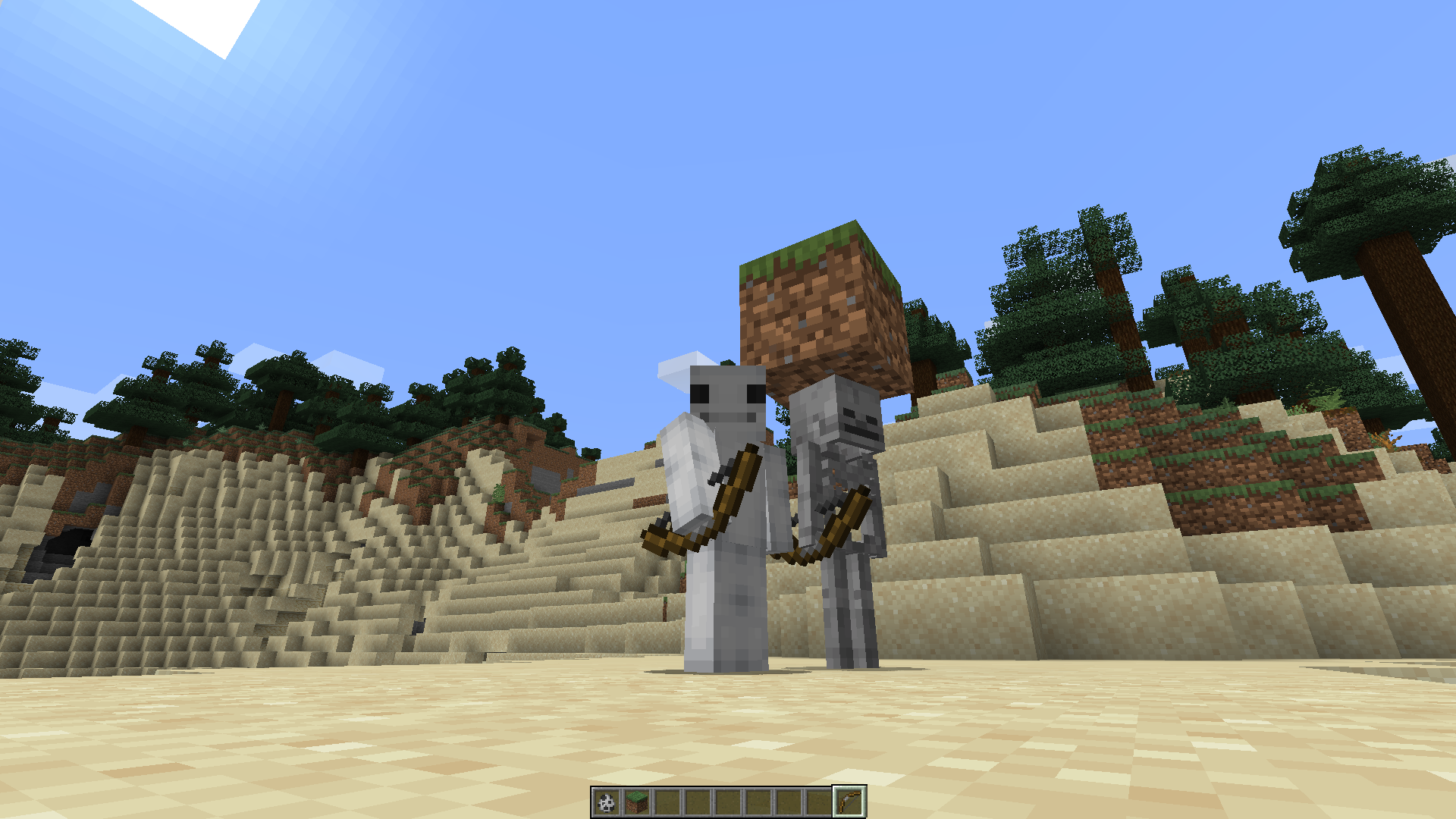 In creative mode, spawn a skeleton. Notice the skeleton's arm position.