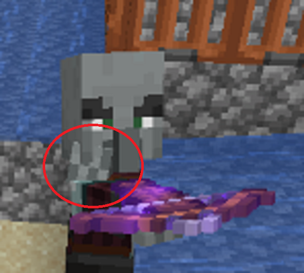 Under certain circumstances, pillagers arms may intersect their head or they will appear to be dabbing while they are aiming at the player for no reason. This can most easily be reproduced with a water stream pushing a pillager perpendicular to the player as seen in the screenshot.
