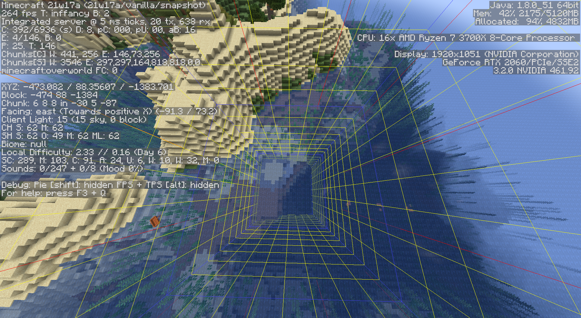 The C&C Preview Datapack can sometimes create biomes with the ID "minecraft:null" or turn biomes that aren't oceans into "minecraft:ocean" biomes. The corruption creates intense lag while crossing the chunk borders.