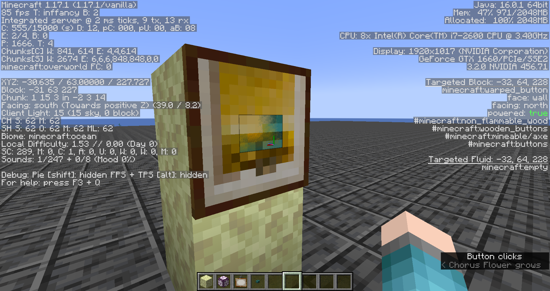 When you place paintning and button on same a block and than press the button it will cause z-fighting.
