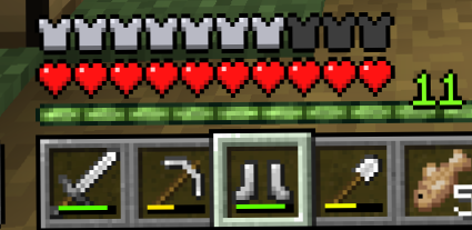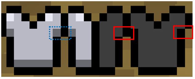 If you have an odd number of armor points, the half armor-icon is missing the inner corner pixel (underneath the arms in the dark grey area). Also the white pixel that represents sort of a shine is moved 1 pixel to the side.