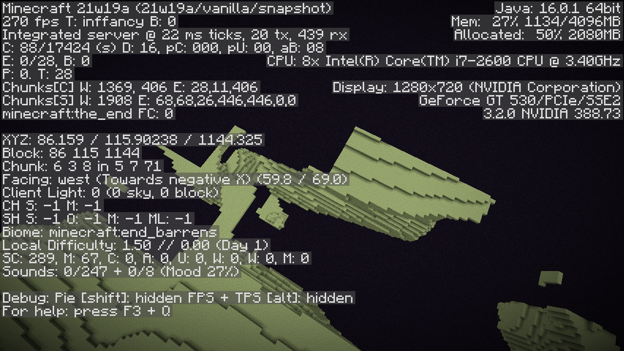The underlying issue seems to have been greatly improved, but there is still evidence of this bug which cannot be seen to such an extent in 21w05b. I loaded my world, and when I logged in there were no chunks around me except for the one I was in even though I had already generated The End. At first I thought I was experiencing MC-223350, but the chunks are not loading at all, let alone not rendering. I was able to move around and the chunks were still not loading. This occurred in the overworld and The End.
