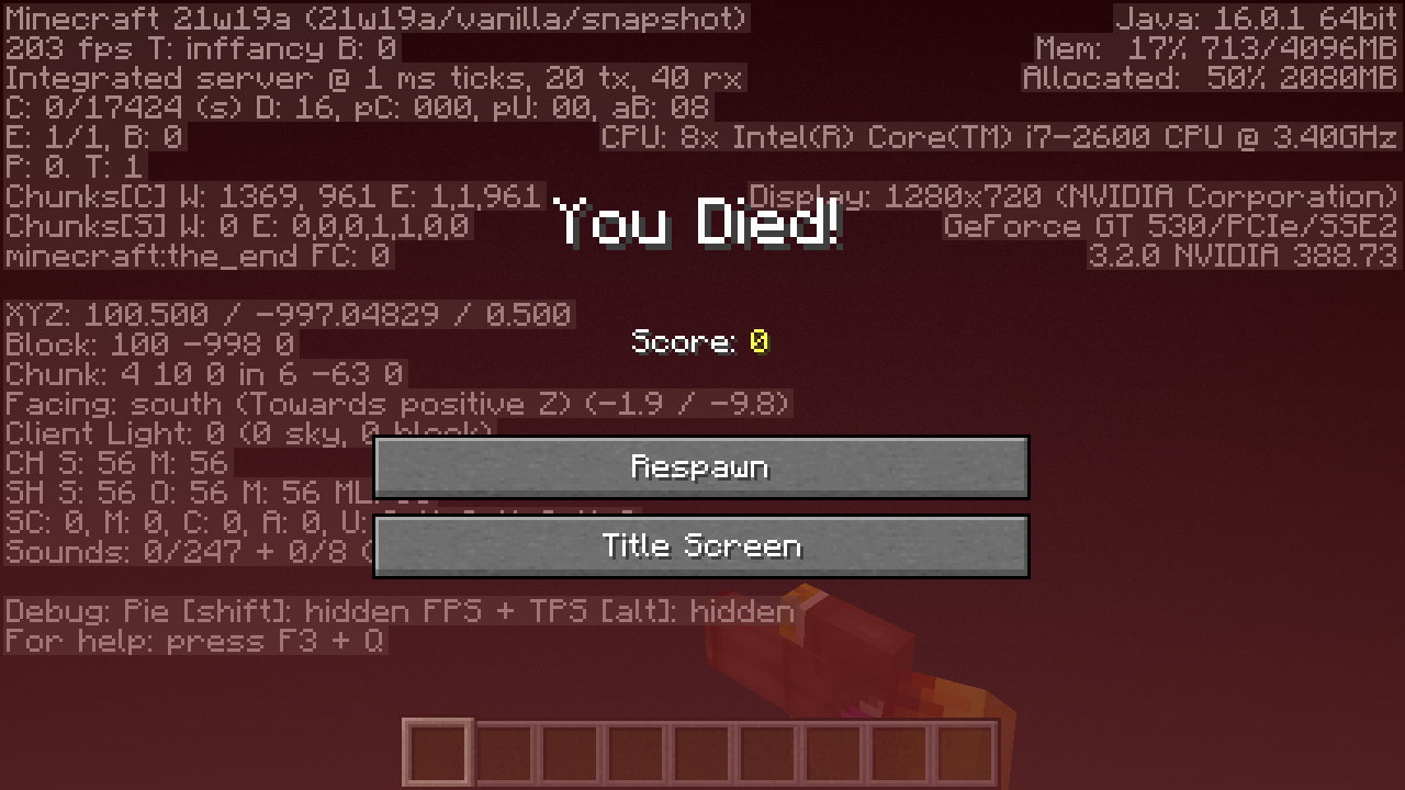 Test in both 1.16.5 and 1.17 development versions to see the difference
