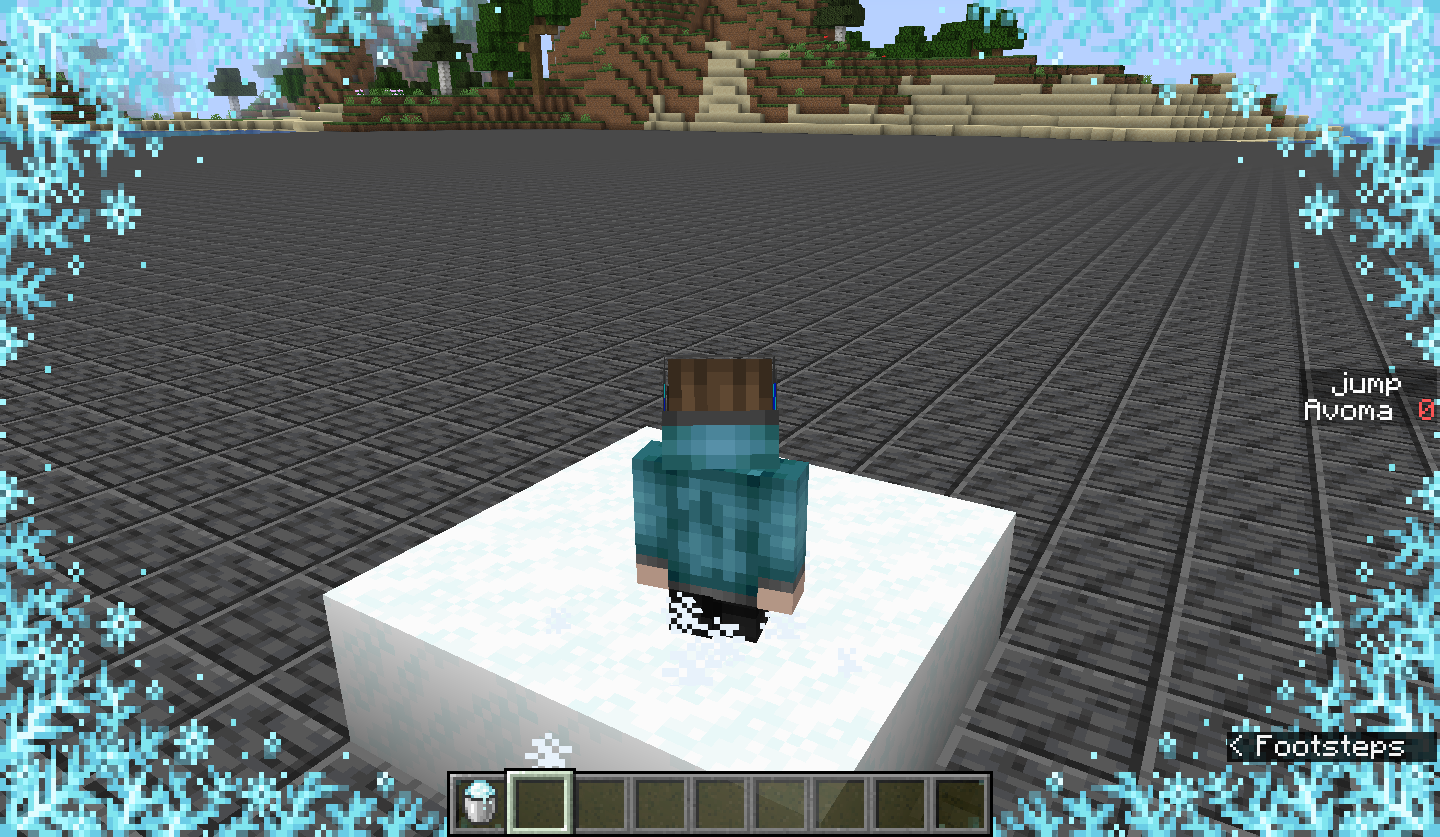 /scoreboard objectives add Jump minecraft.custom:minecraft.jump/scoreboard objectives setdisplay sidebar JumpSummon a large area of powder snow by using the command provided below.
