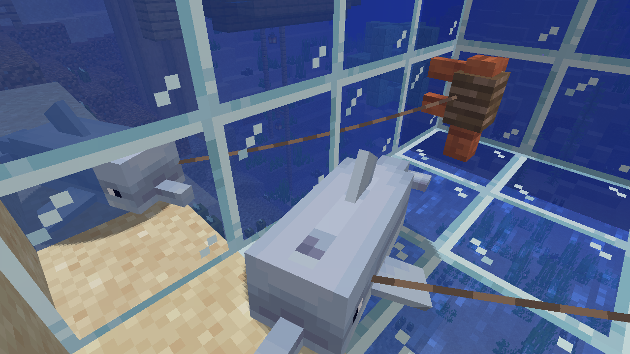 Dolphins which are in a glass enclosure and on a lead, can somehow glitch through the glass and find themselves on the other side. (see the screenshot)
