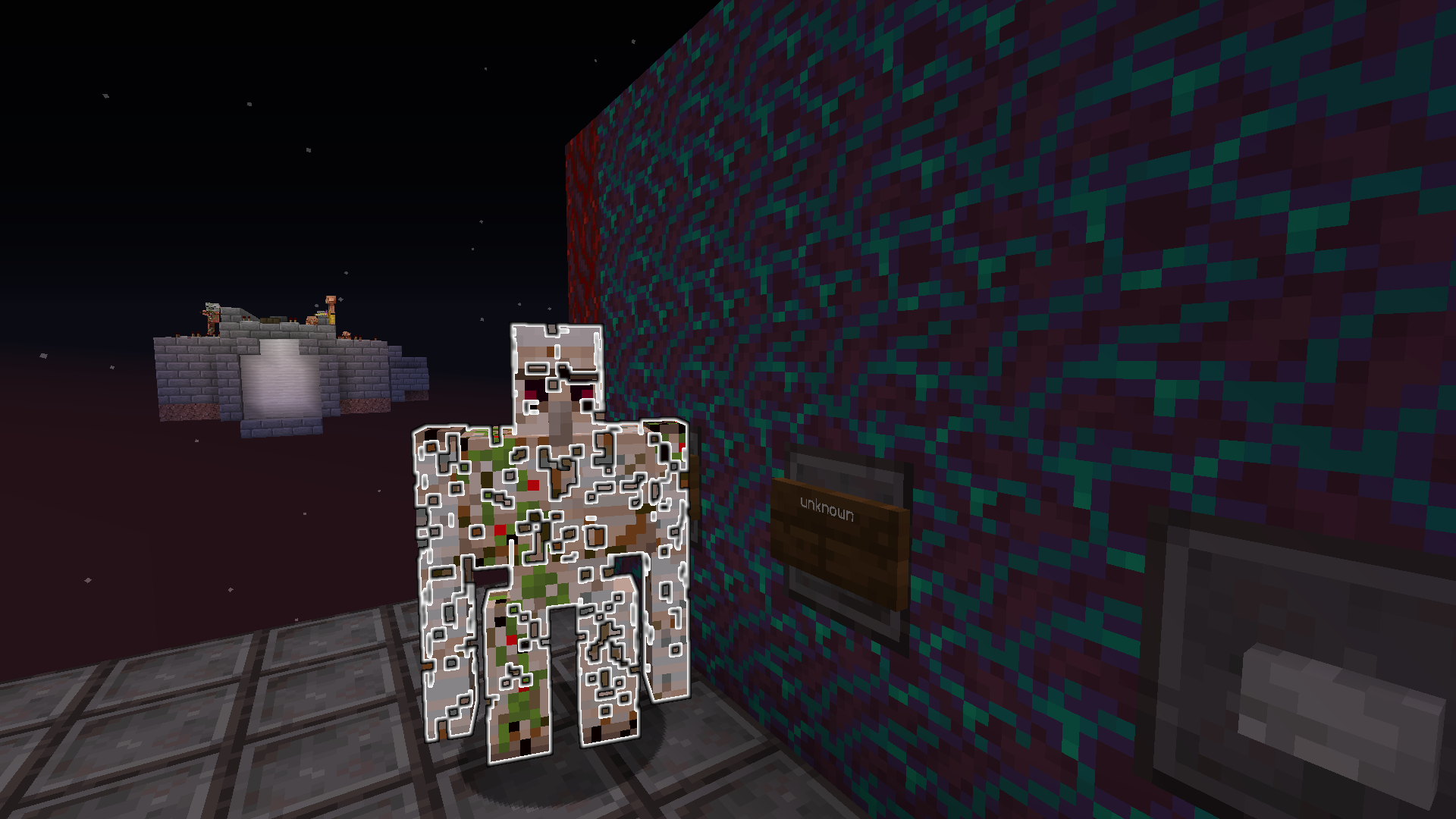 If an Iron golem is damaged and he is hit with a Spectral or given the effect Glowing you can see through him but I don't know how to describe it.