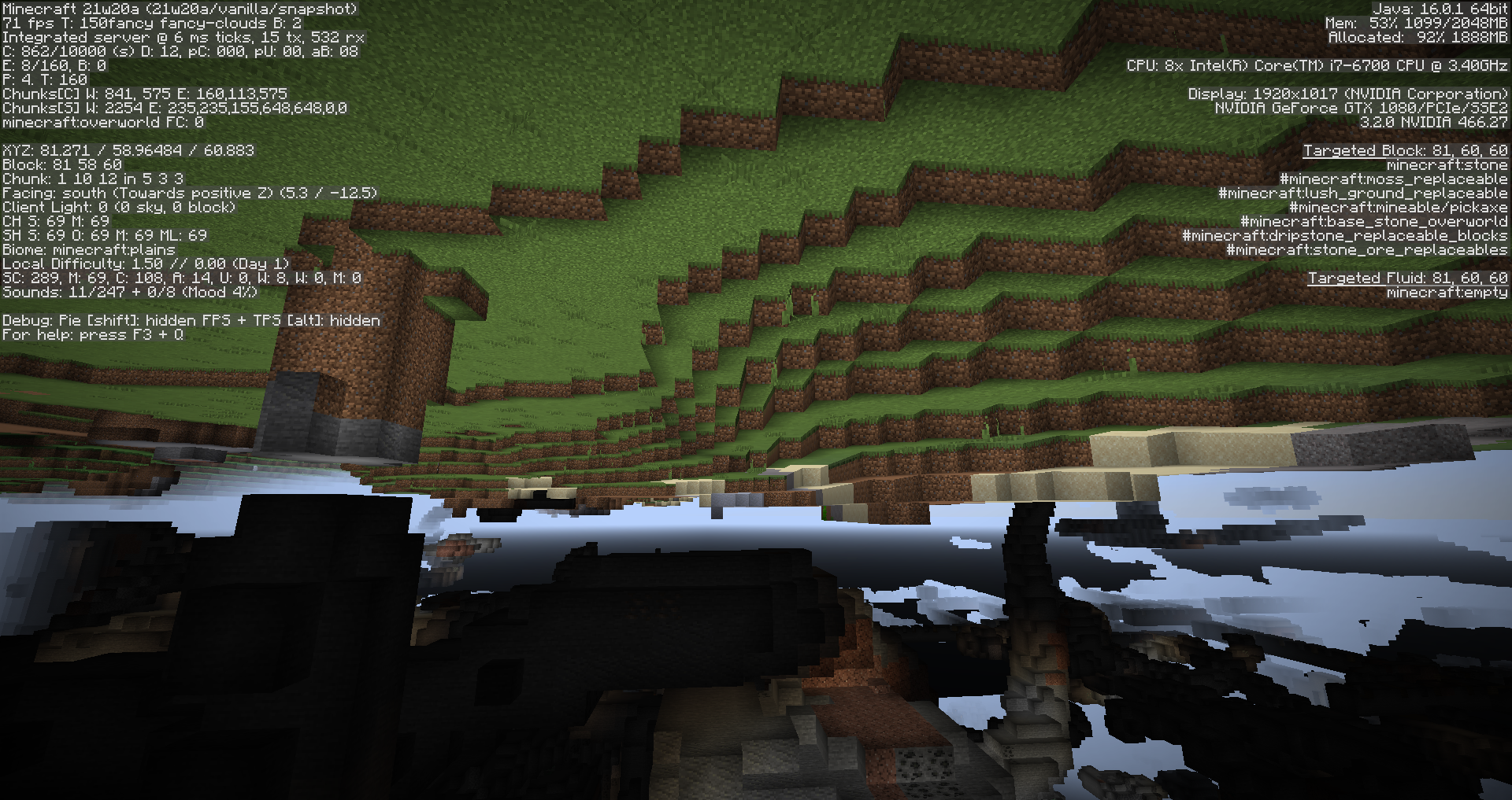 this has been an ongoing issue since 21w14a, when the new graphics engine released. previous bug reports were listed as resolved, but this issue is still happening. when in spectator, block textures are visable from behind, making an "inside out" look. this issue affects only some users with certain graphics cards.