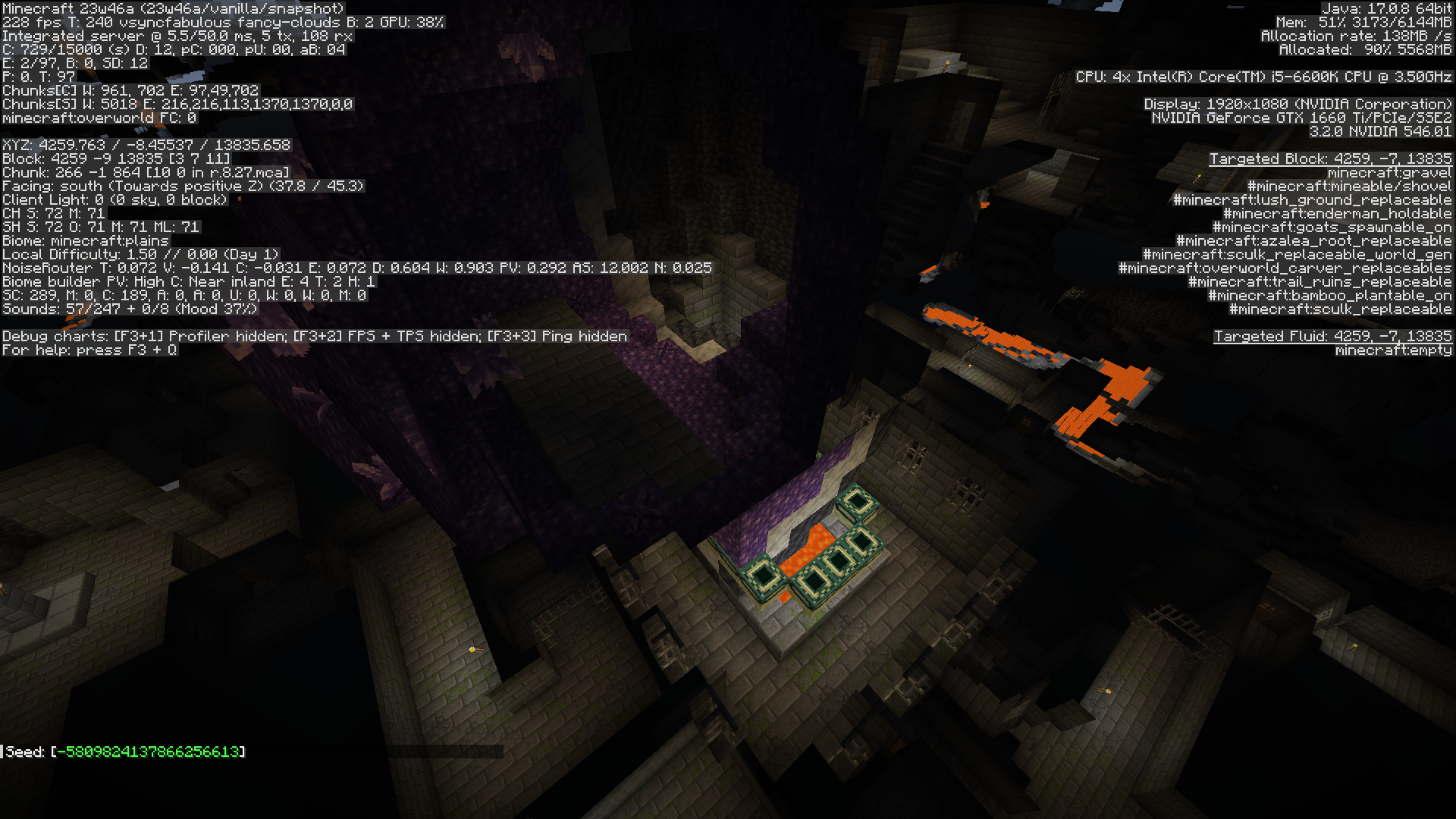 Generate a world with the seed provided above and teleport to the given coordinates.