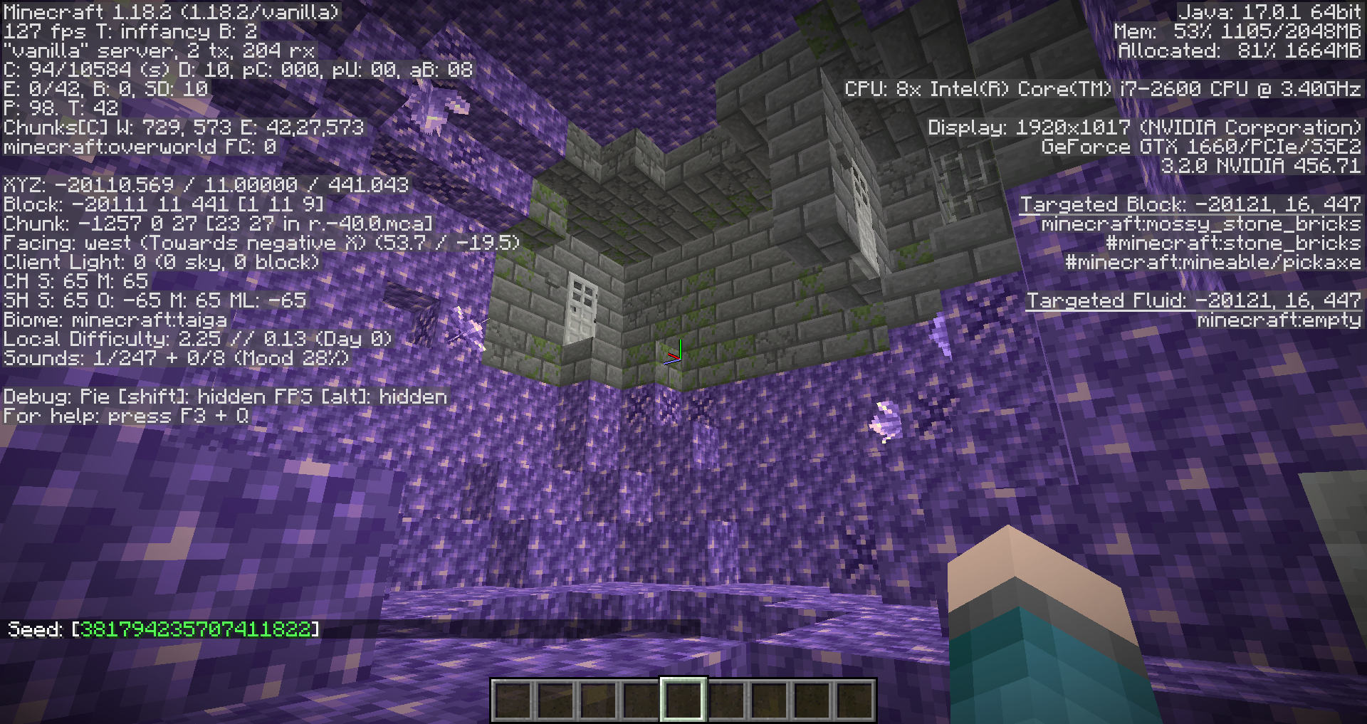 Coordinates: /execute in minecraft:overworld run tp @s -1372.10 0.00 -810.30 609.31 6.30Steps to Reproduce: