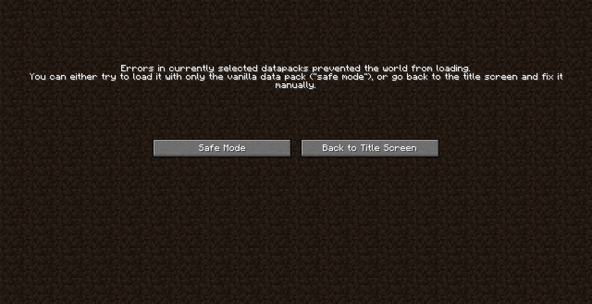 Failed to load datapacks, can't proceed with server load