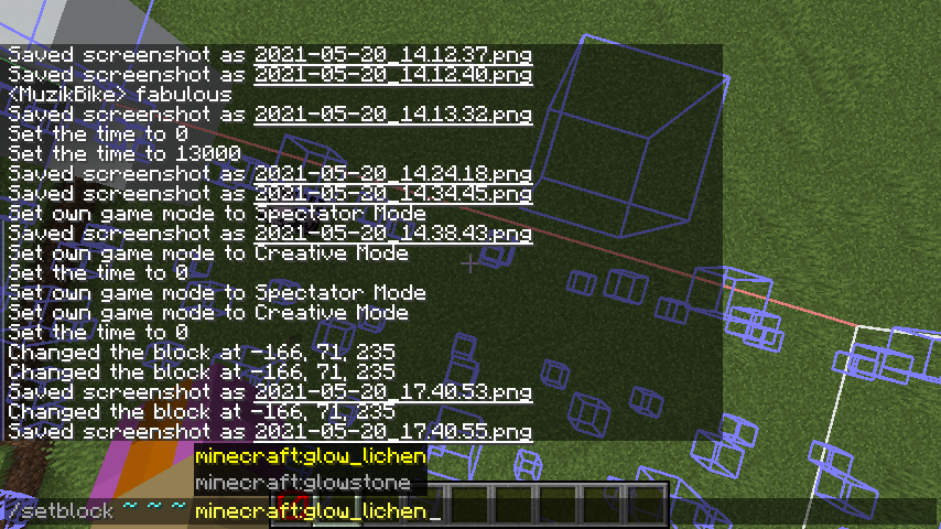 This is probably a wontfix since glow lichen cannot normally be placed in this configuration. However, it's still a case of an invisible block not being shown where invisible blocks are stated to be shown.