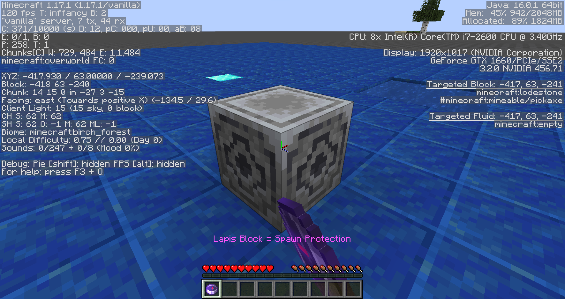 Take note as to whether or not attempting to lock compasses to lodestones in spawn protection causes a desync.