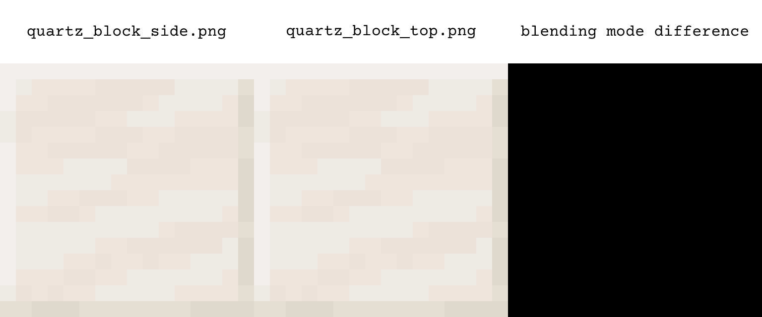 There are two quartz block files in texture assets, quartz_block_side.png and quartz_block_top.png which share the same texture. Although being identical, both of them are still used in models assets. Shouldn't they be merged for consistency sake?
