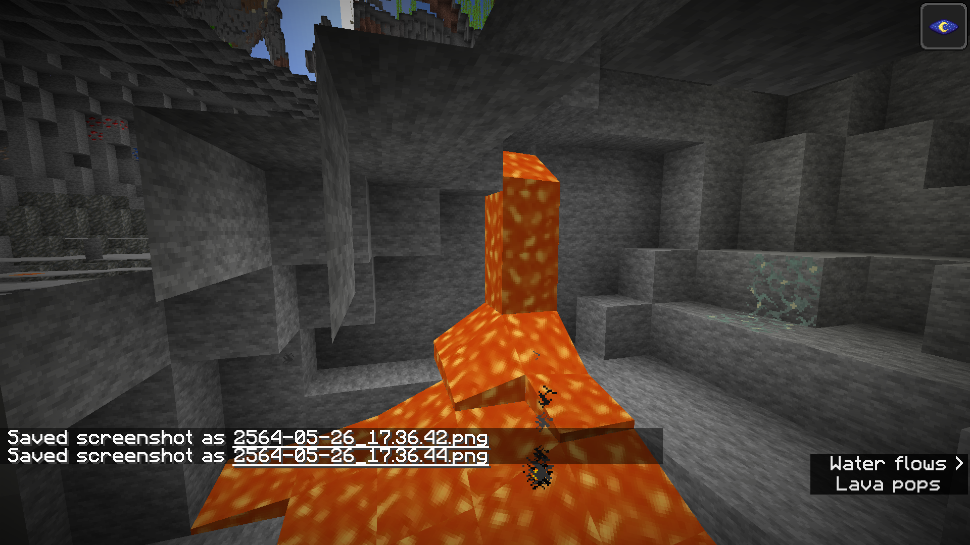a bug from lava or water flow from the ceiling and wall of caves