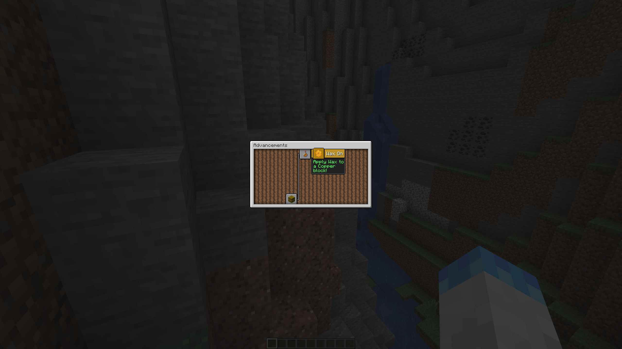 The advancement descriptions for "Wax On" & "Wax Off" states to wax/wax off a copper block despite you being able to get the advancements from the copper stairs & slabs