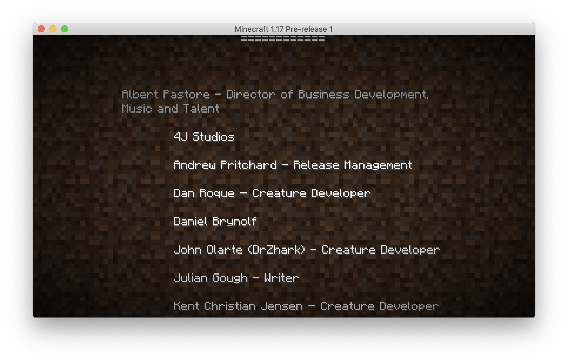 Either watch the credits until you get to the "Special Thanks" section, or just open the credits.json file and observe that Albert's name is designated as a title and "4J Studios" is designated as a name.