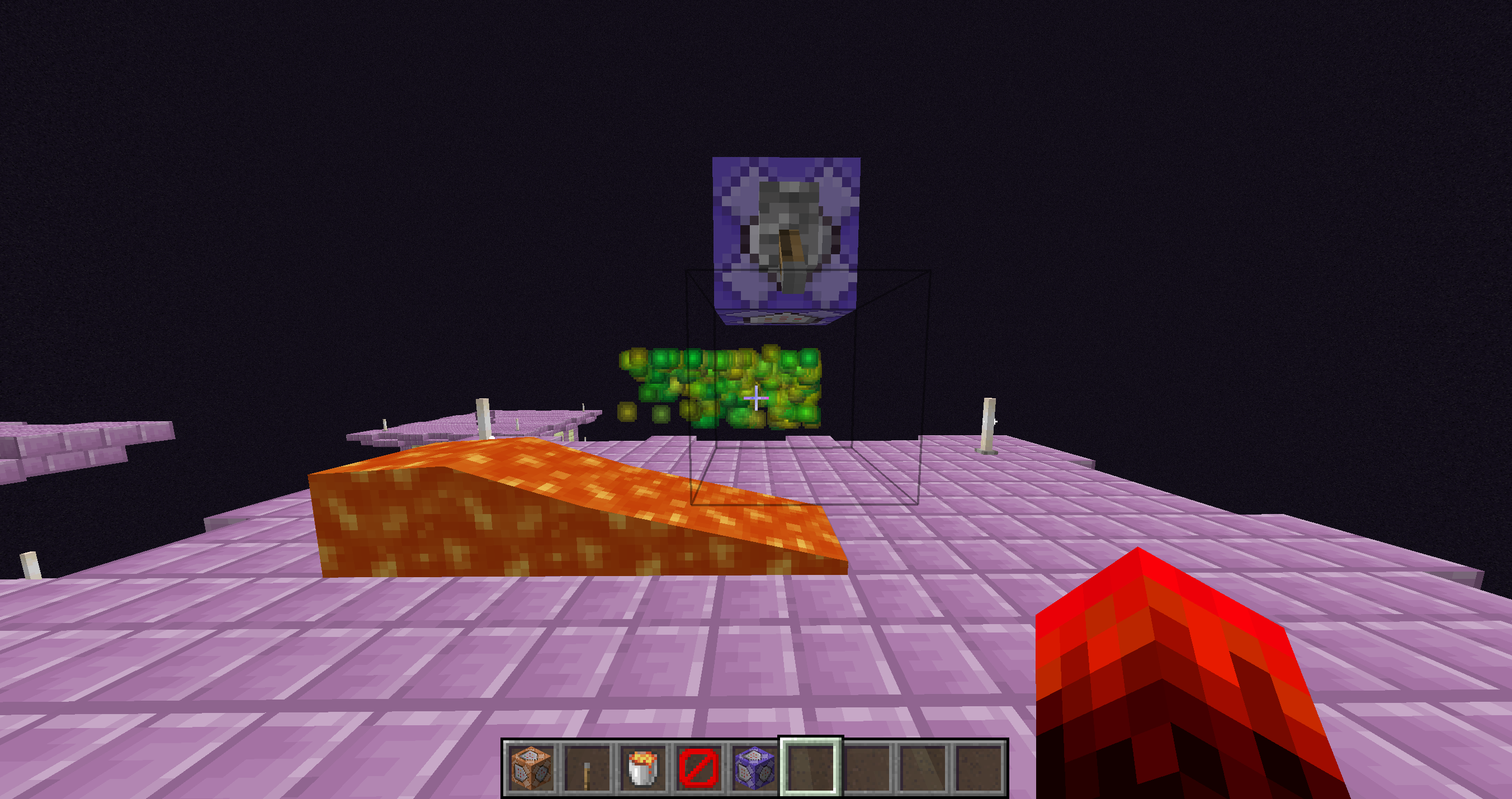 The experience orbs float around in the air as if the flowing lava was a full block.