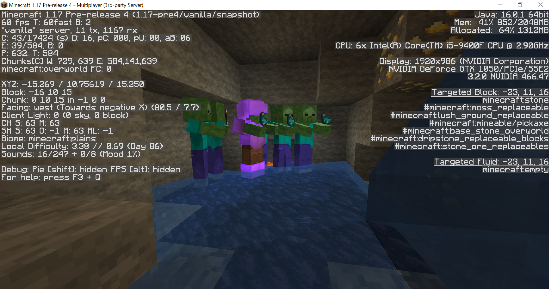 Due to the new way Glowsquids now spawn in caves its causing issues where spawned zombies pick up the ink sacs and are therefore not despawning. I came across a cave that had around 50 zombies each holding an ink sac. Unfortunately i had to kill them all due to some lag it was causing so no screenshot of that situation but i found more today. This is on a snapshot server ive been running since 1.16 snapshots. Its Java 16 etc etc
