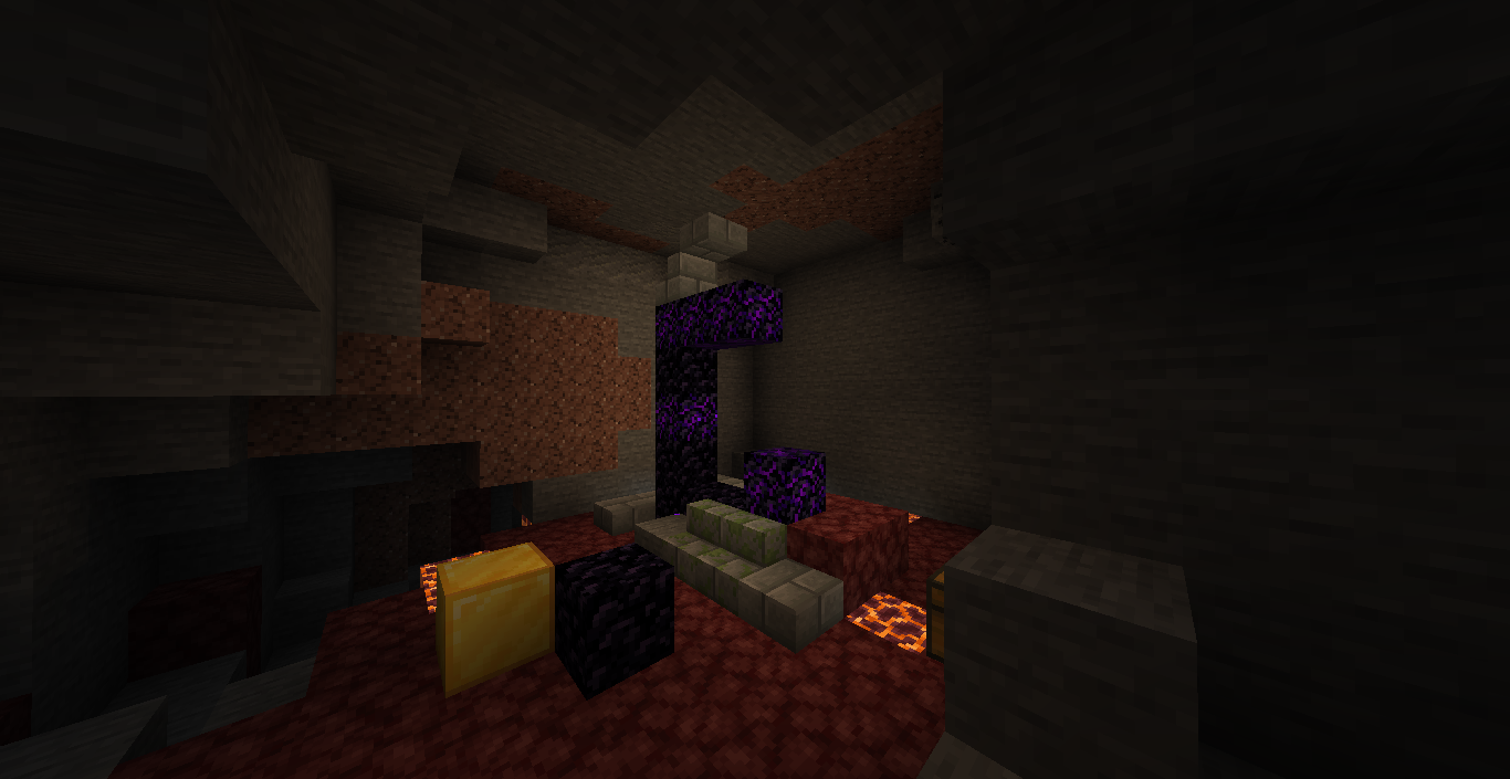 Ruined nether portals generate in caves, as shown in the picture.