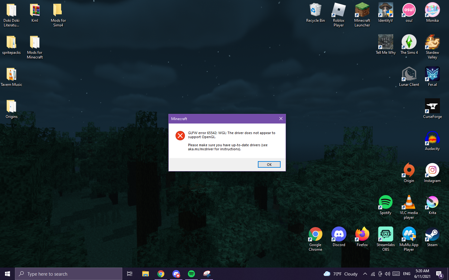 This is known to be a problem with your computer. – Update your graphics card drivers. (Do not rely on automatic updates) – If you are using Java arguments to increase the amount of memory, please reduce it to the default 2GB. – If that did not help, please contact Community Support and refer to this ticket (e.g. "I have reported this issue on Mojira as MC-XYZ.").
