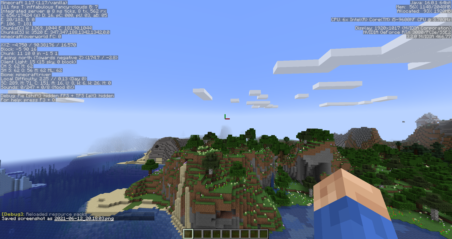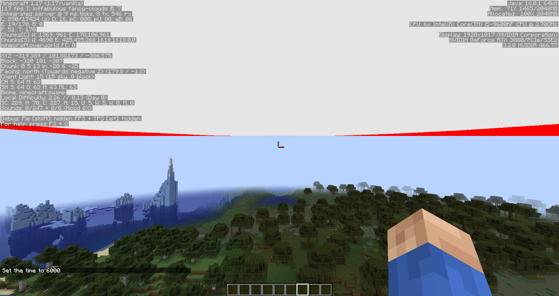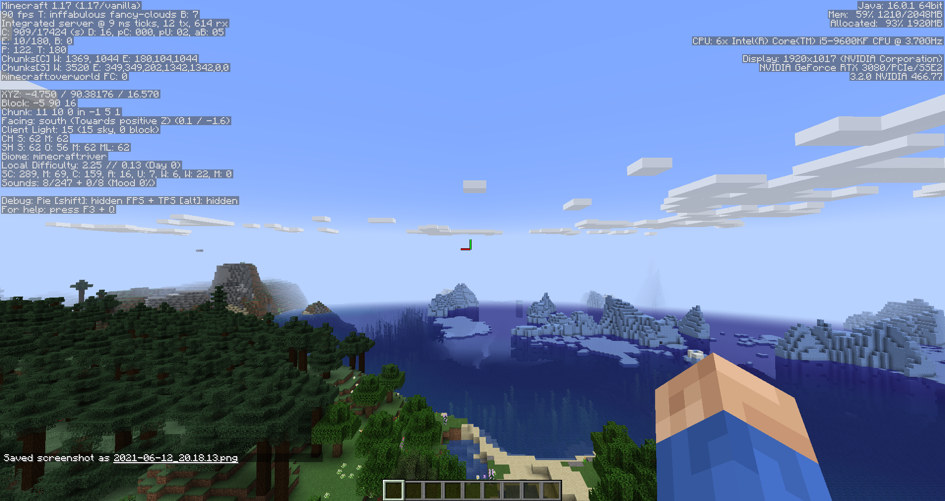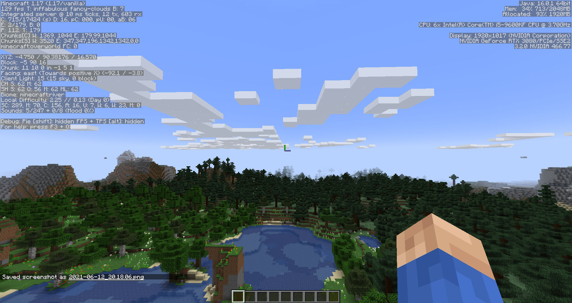 The clouds appear to be offset so that they extend further in the east and south directions than in the north and west directions. A resource pack is used in the images to remove the fog on the clouds for a clearer view.