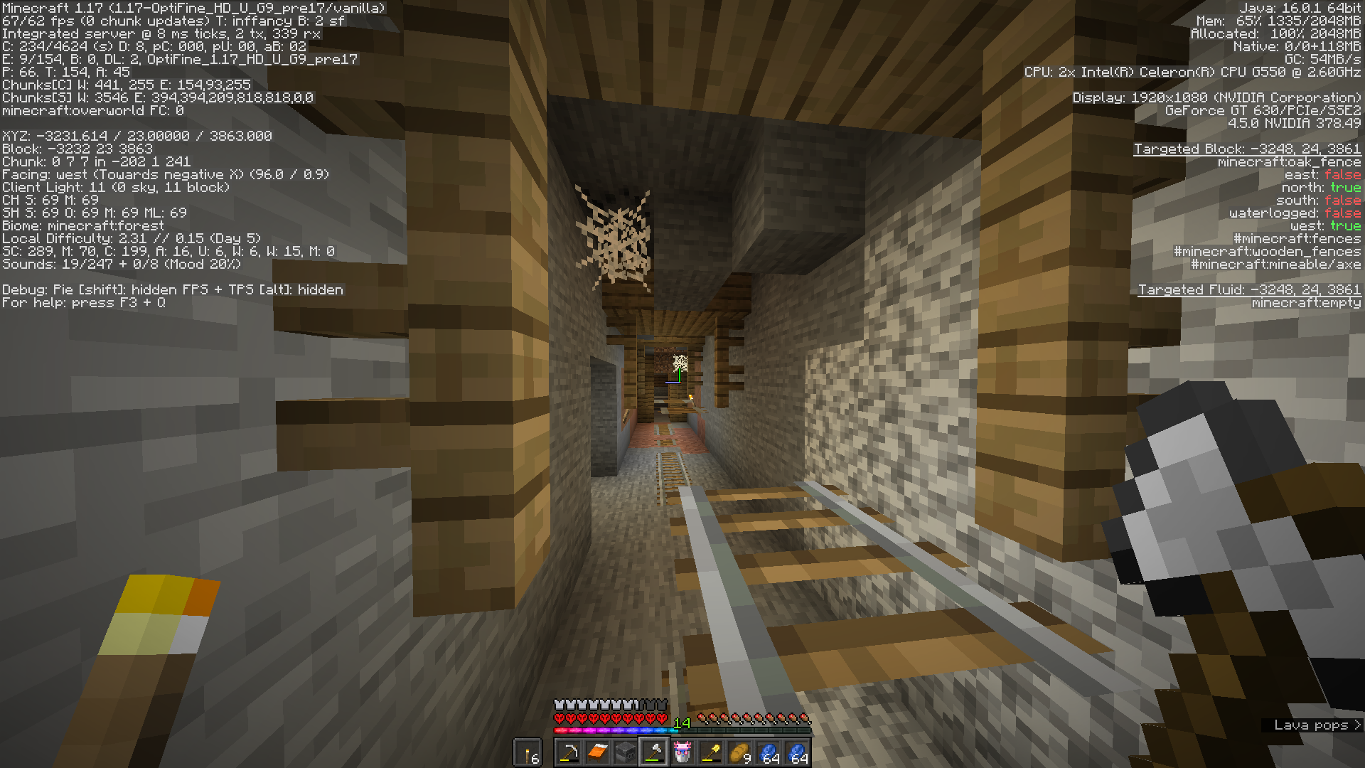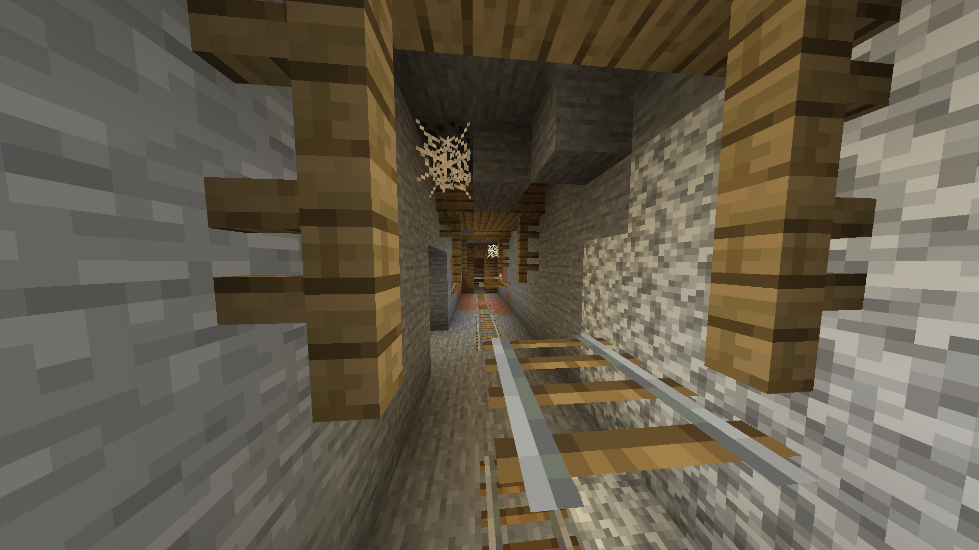 I've found this weird Mineshaft Generation. The rails and fences are levitating. Maybe it's 2 Mineshafts in 1 place, but I'm not sure.