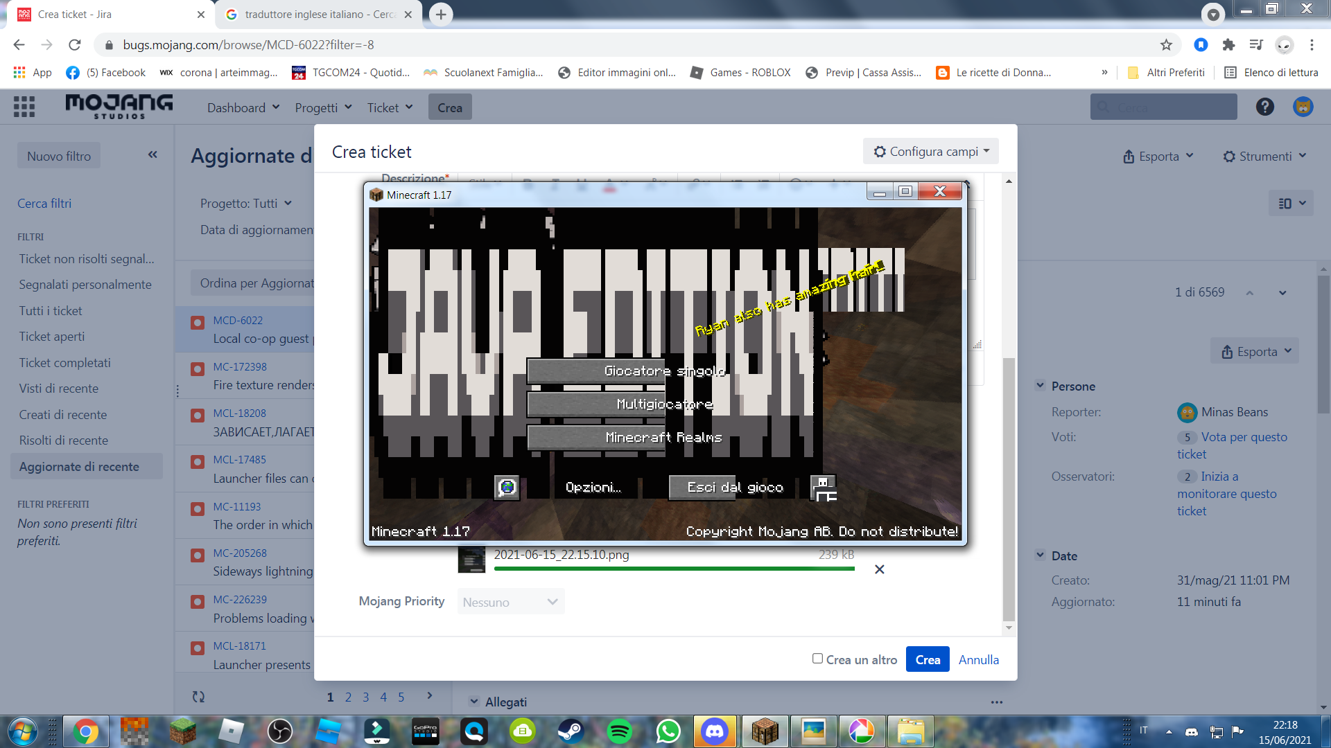 If you need additional help to fix this problem, please contact Community Support and refer to this ticket (e.g. "I have reported this issue on Mojira as MC-XYZ.").