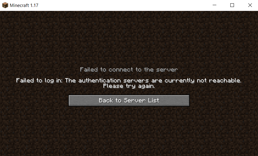 When I try to connect to a server in multiplayer I get the error "Authentication Servers are not reachable. Please try again" I have tried every solution in the book, nothing, I reset my router, nothing, I used direct connection (every single server name I could think of for CubeCraft), nothing, I uninstalled and reinstalled, nothing, I resetted my launcher, nothing, I reset my computer, nothing, I refresh the server list, nothing, I turned off firewall, nothing, I doubled check to make sure everything Minecraft related is allowed to be pass-through firewall, nothing, I waited for an entire day, nothing, absolutely nothing, I really don't know what to do, my Gamertag or Username for Minecraft is Trible69, please help me.
