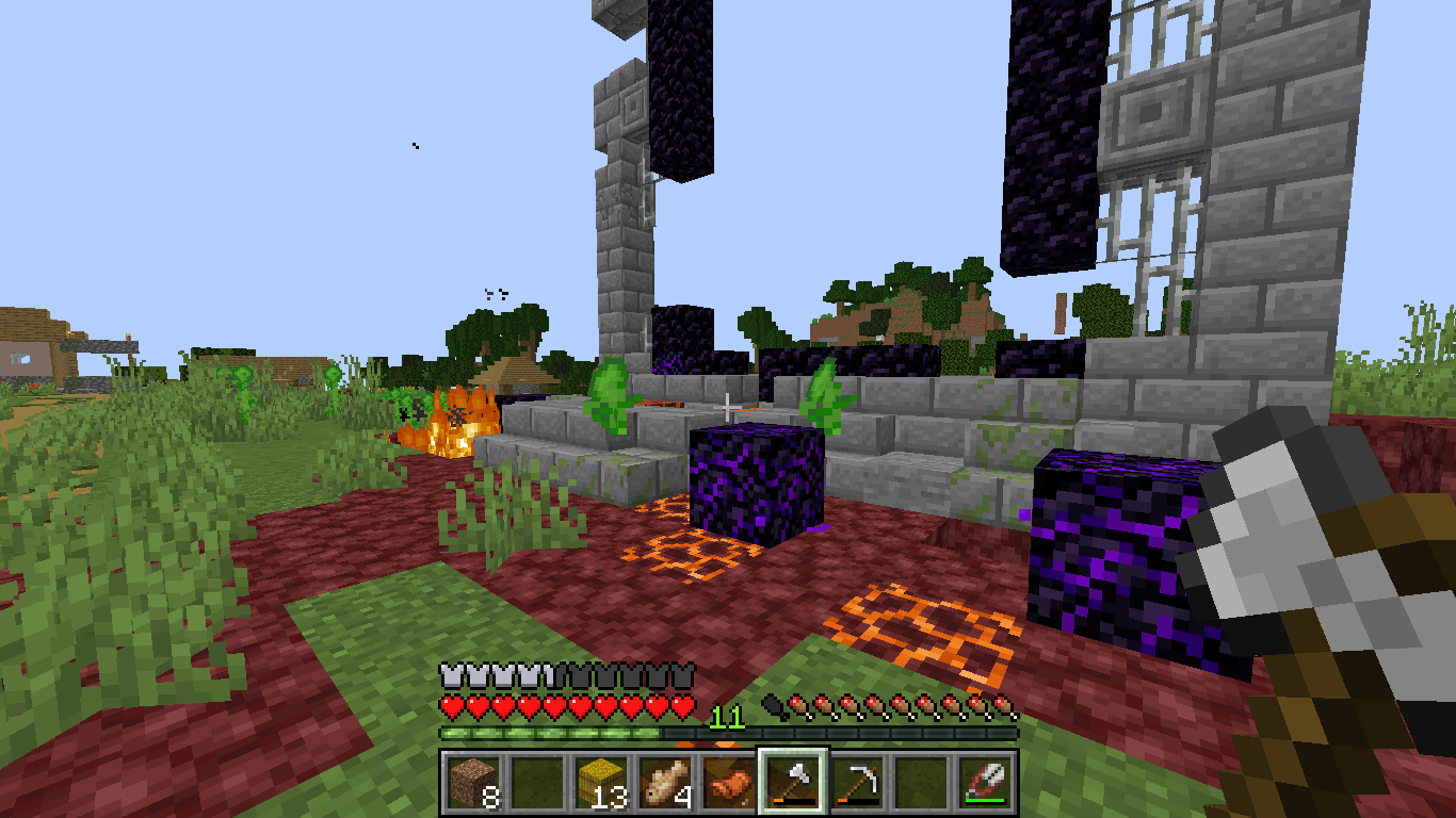 I found in my survival a nether portal estructure and in a cave I found floating water, download the images to see.