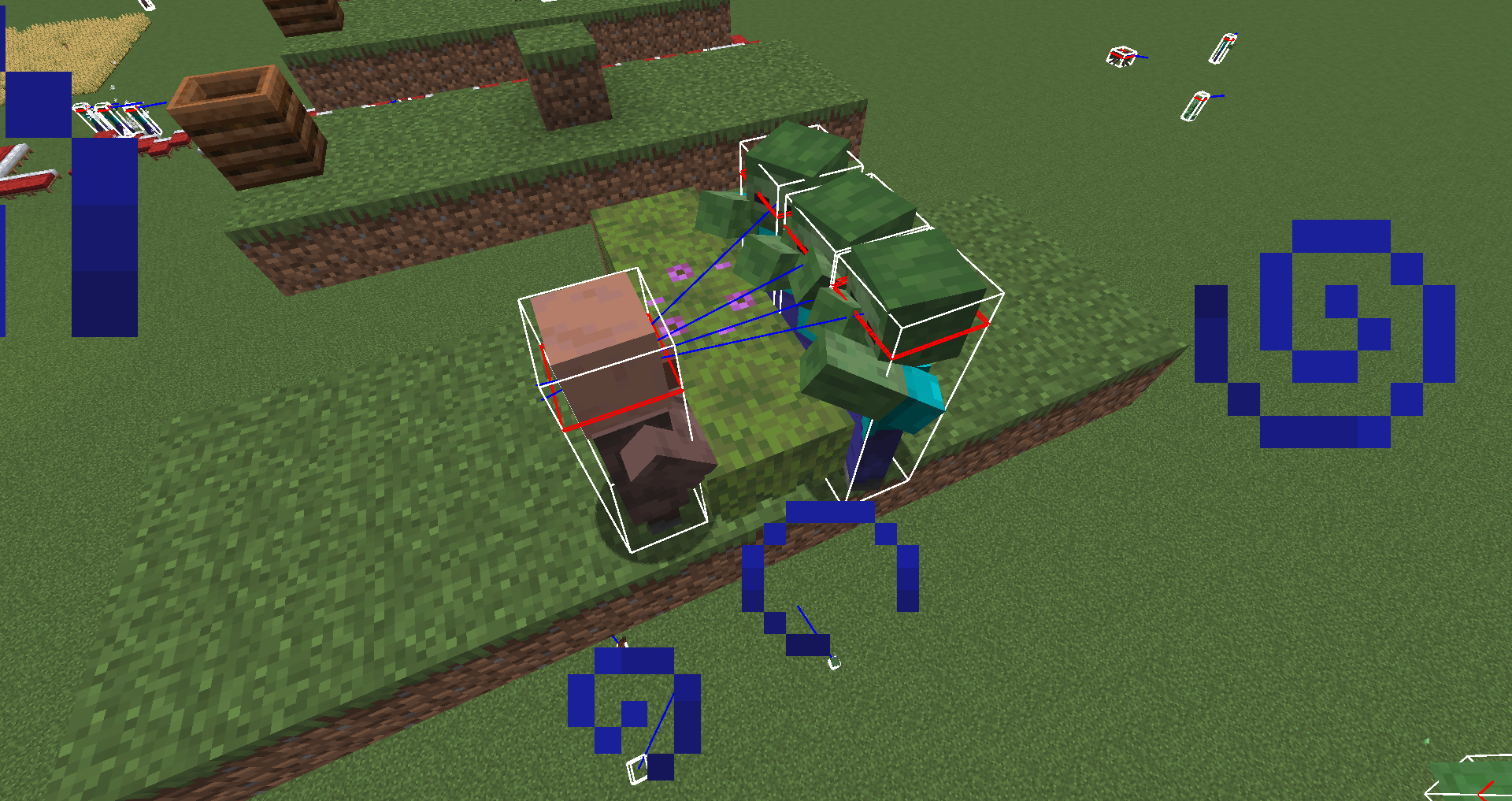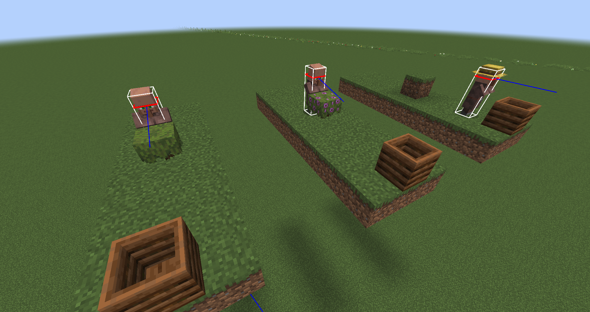 Actual result: The villager pathfinds in a straight line towards the workstation but never reaches it because they ignore the bush blocking their way as if it was a non-solid block. Zombies are unable to reach villagers in a similar manner.
