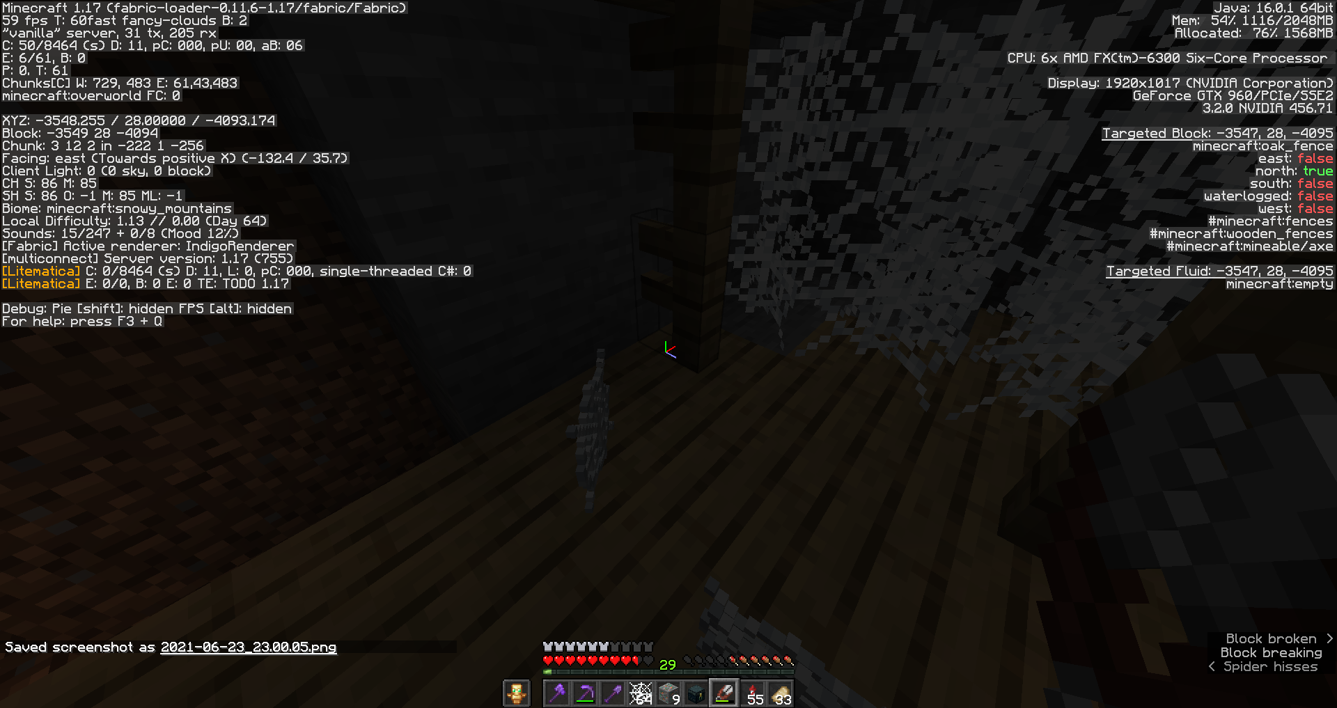 Screenshots with F3 Screen where you can see the light level down below