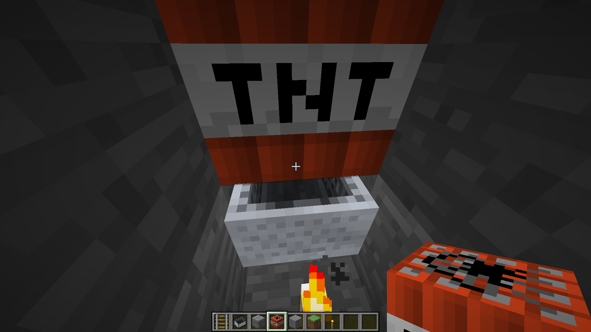 See screenshots. If you place down a rail, a tnt on top of the rail and a normal minecart onto the rail, you can see caves by entering the minecart.