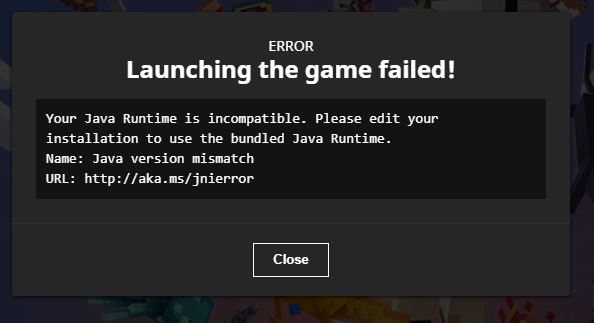 when you try to launch Minecraft with a JRE other than the bundled oracle JRE 8 it doesn't launch.
