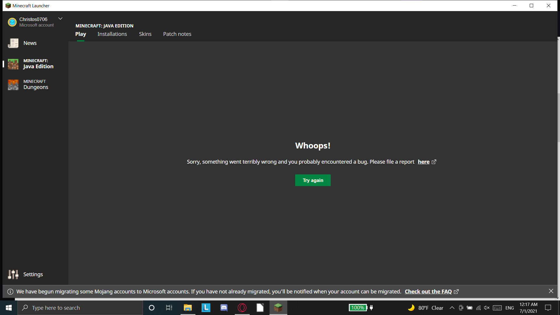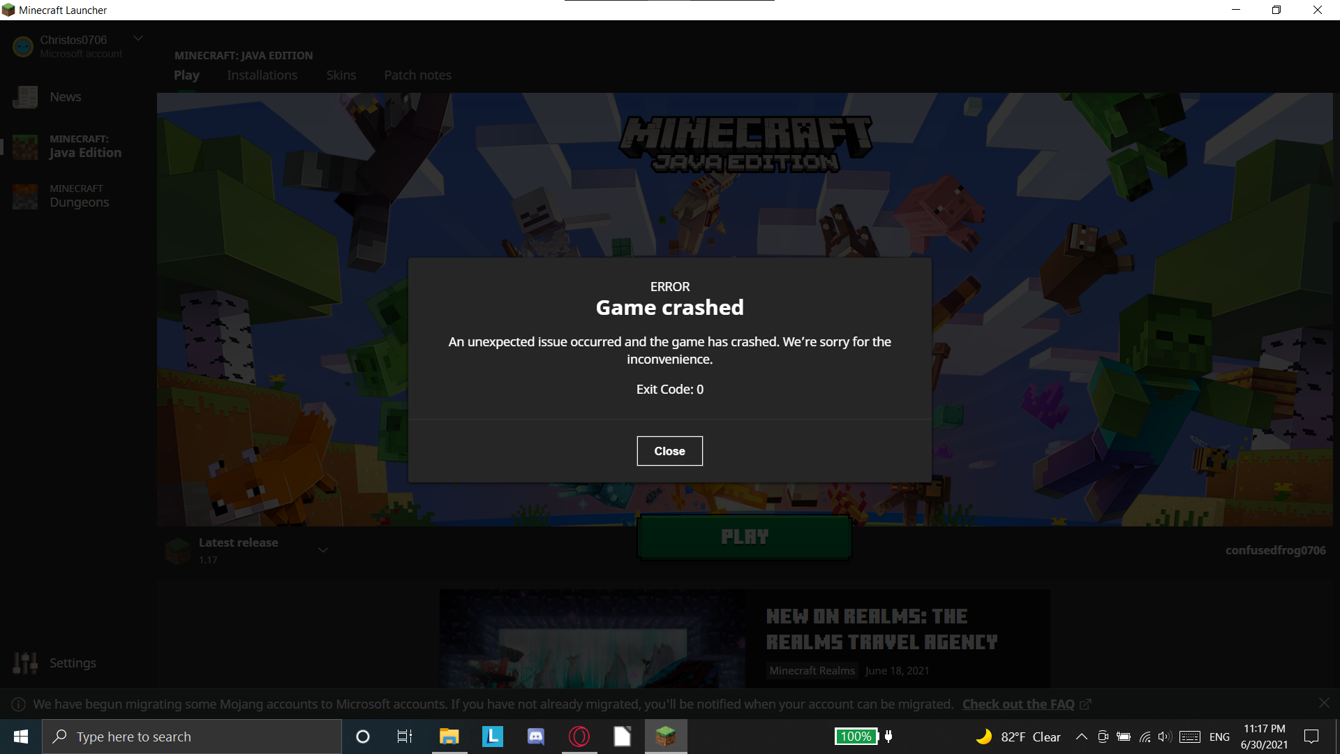 I Just purchased the game, I downloaded the minecraft launcher, I have logged in to my minecraft account and when I press play it shows me a screen that says: Game crashed ,an unexpected issue has occurred and the game has crashed. We are sorry for your inconvenience. Exit code:0. Can you please tell me how to fix this?