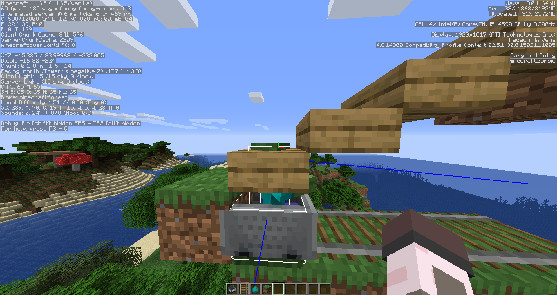 When a zombie is in a minecart that drives under bottom half slabs, it starts to burn. This does not happen if it is inside of a full block or underneath top half slabs. This does not seem like an intentional change and might be a side effect of some other changes made. If intentional, please mark as "works as intended"