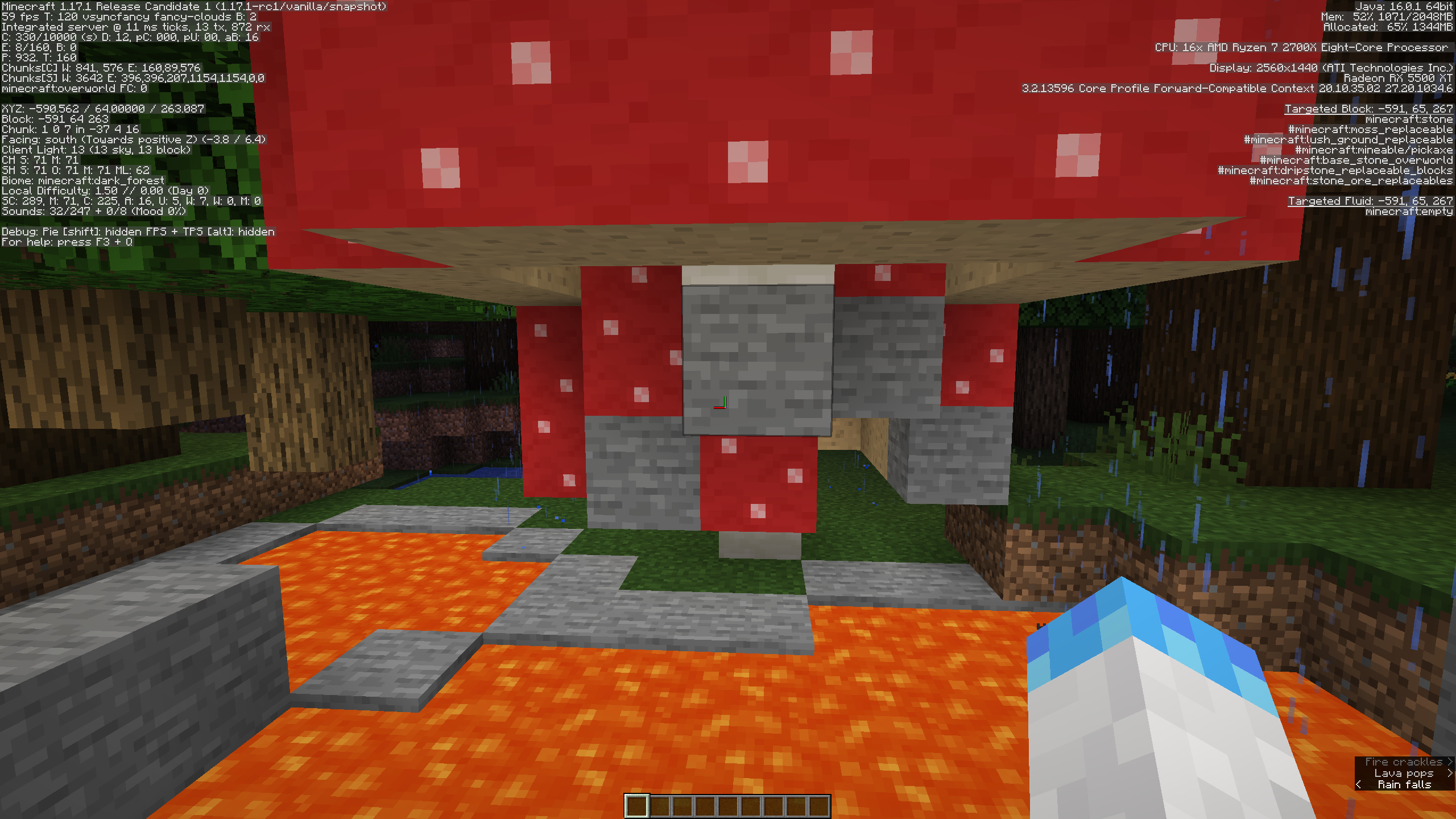 Parts of a mushroom tree can be replaced with stone from a lava pool. In the screenshots below it shows the Mushroom Stem & Red Mushroom Block being replaced though Brown Mushroom Blocks could also be potentially replaced as well.